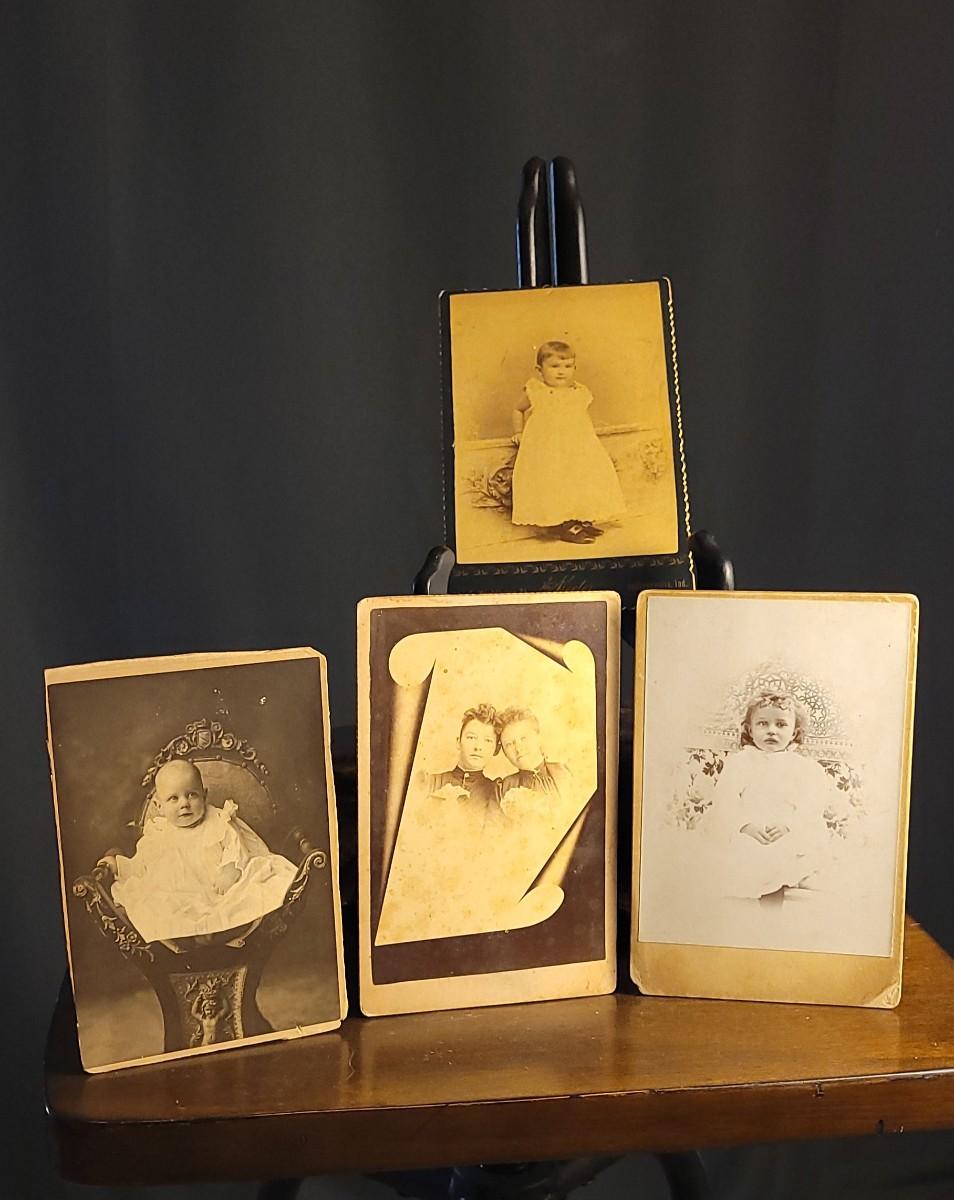 This group of (4) Antique Cabinet Card Photographs all feature children and children's fashion as the subject matter.