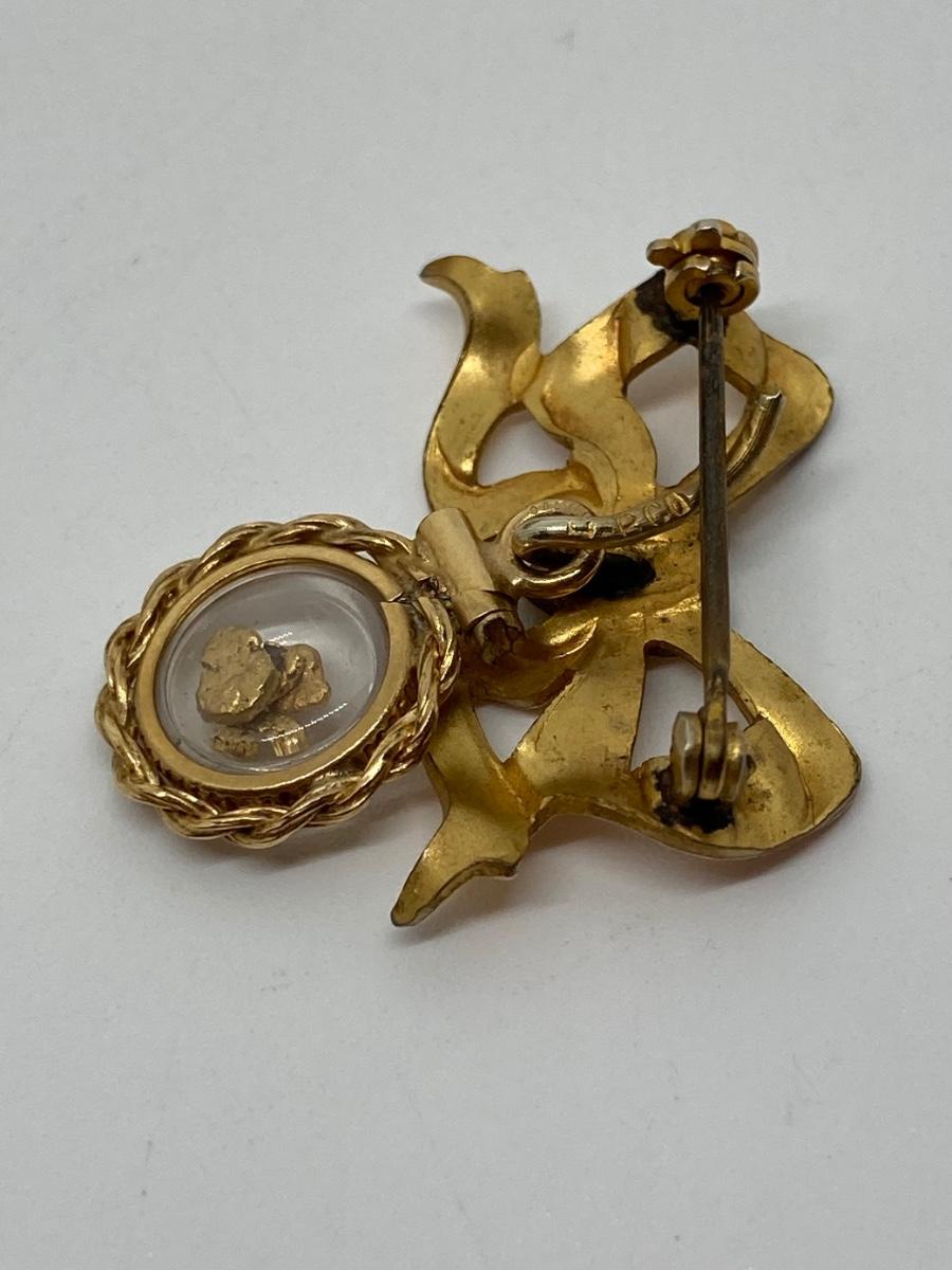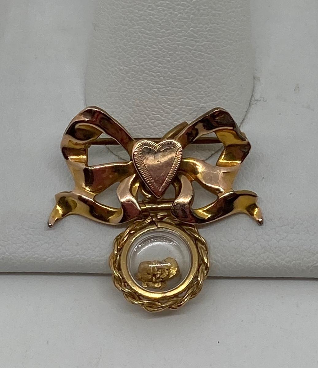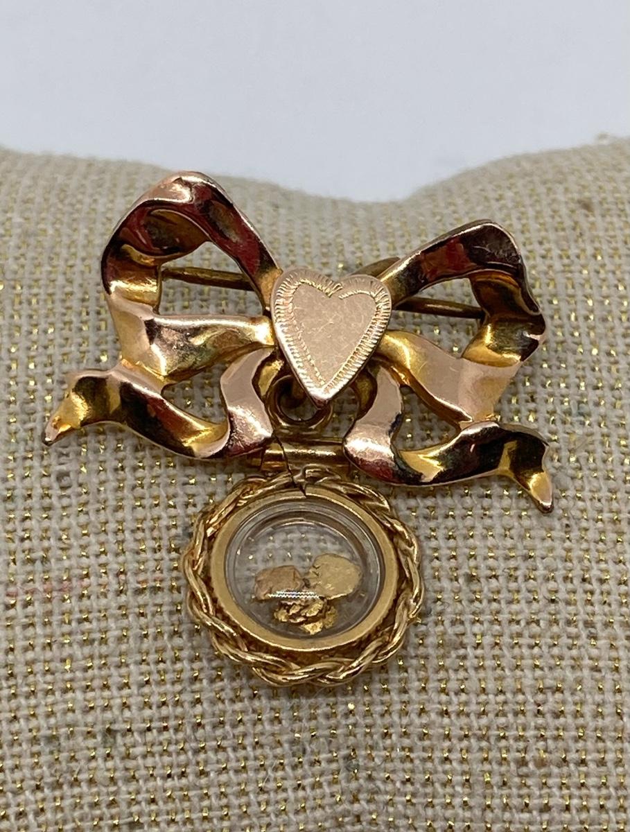 Lot 153: Vintage Sweetheart Pin with Gold Nugget Dangler 12K GF