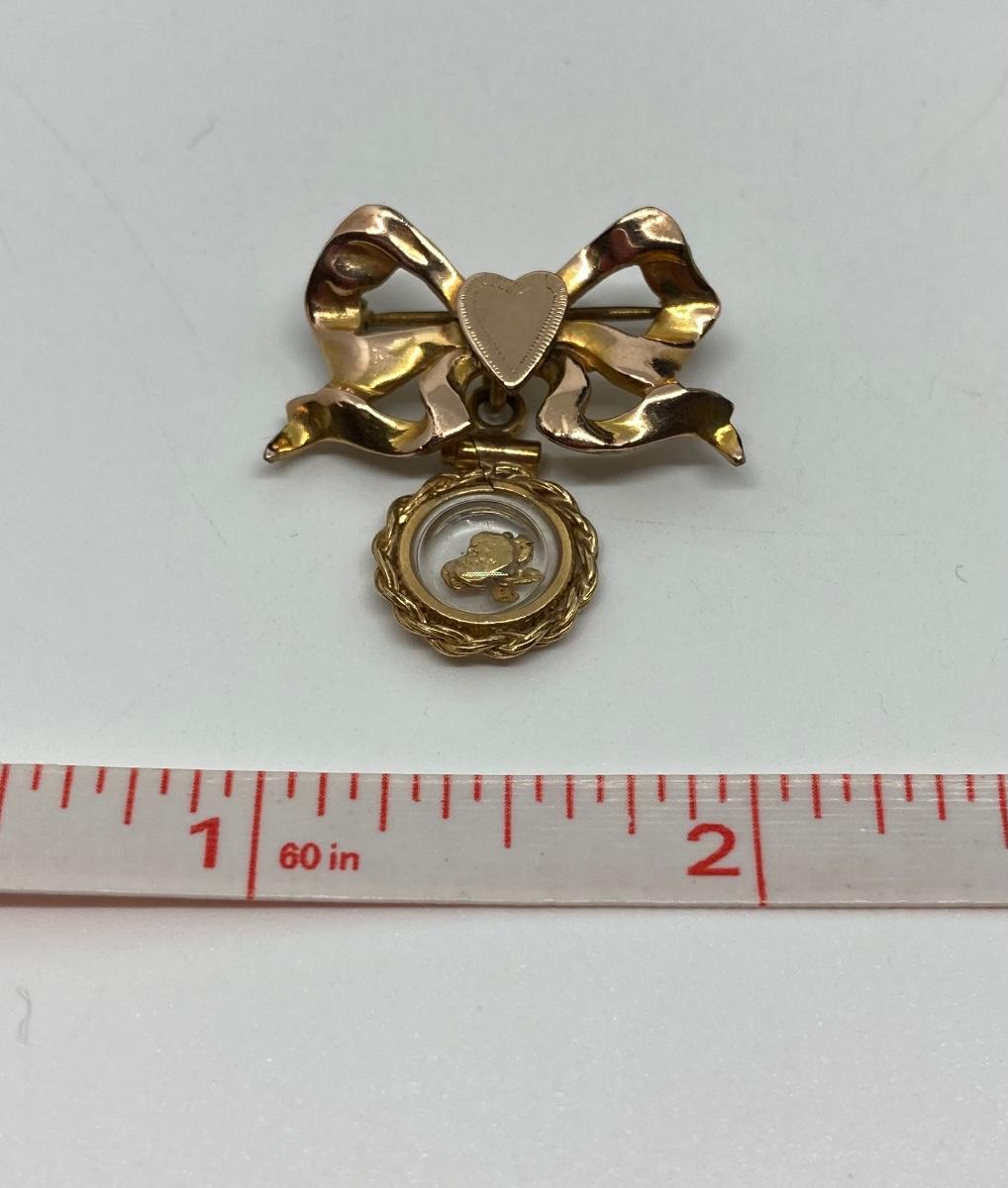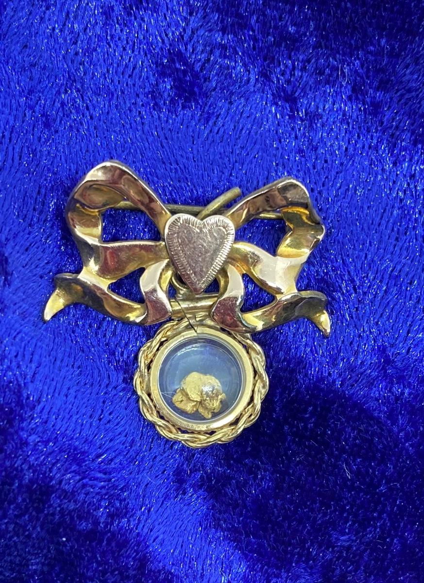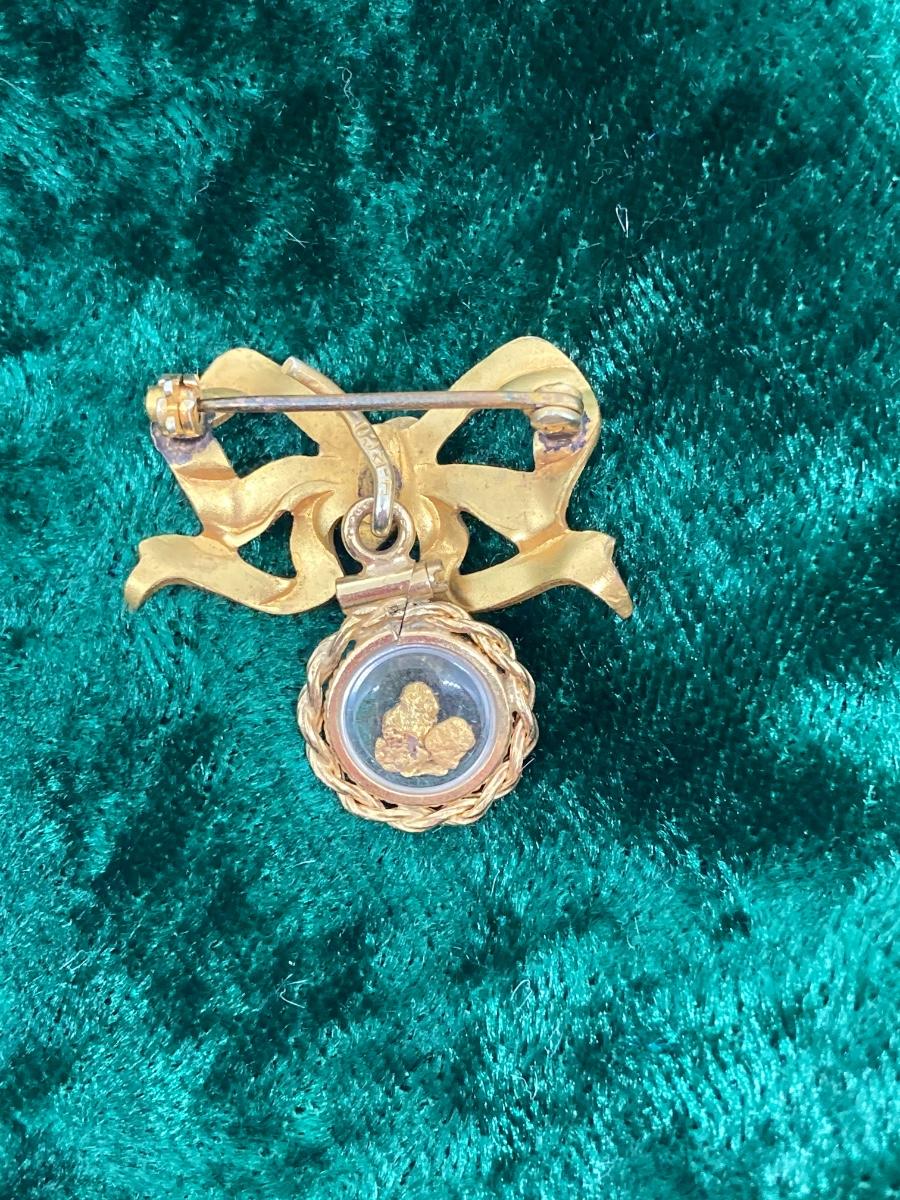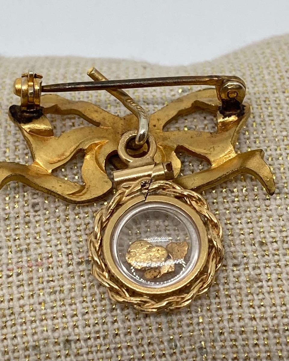 Lot 153: Vintage Sweetheart Pin with Gold Nugget Dangler 12K GF