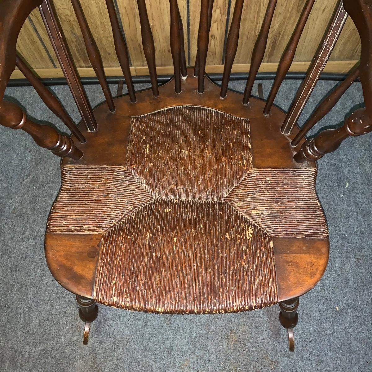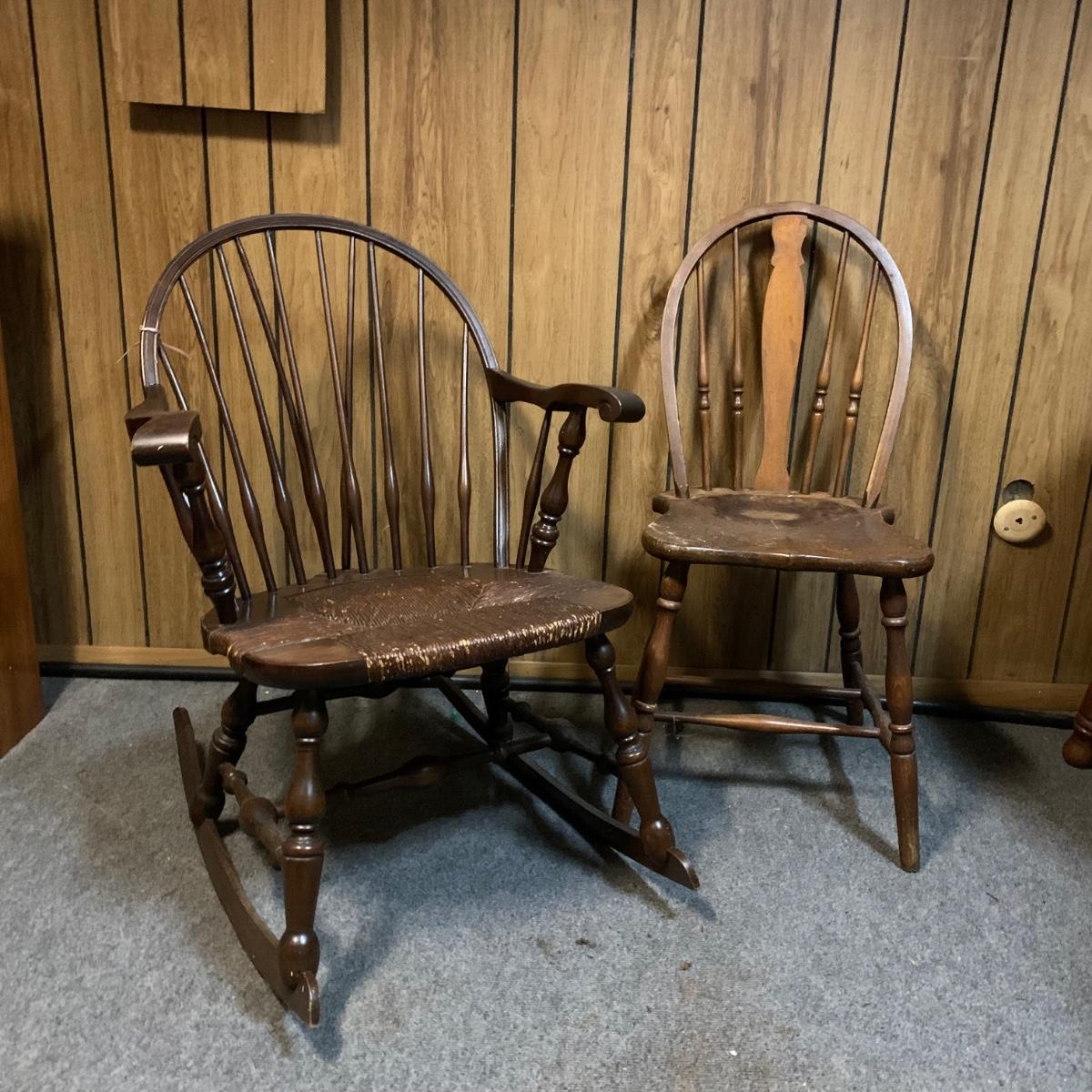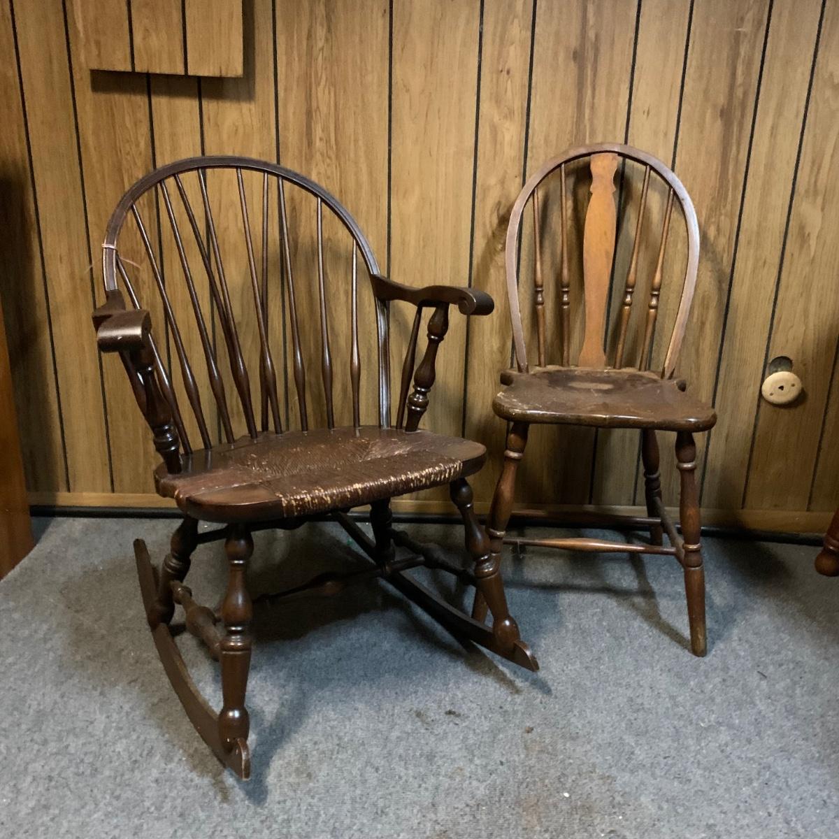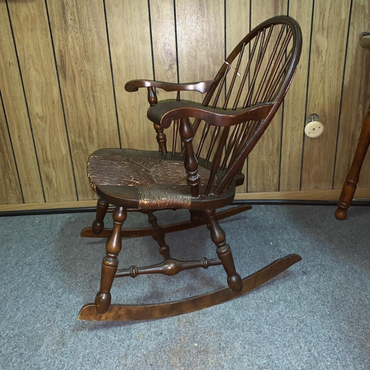 Lot 153: Vintage Windsor Rocking Chair w/Rush Seat & Wooden Accent Chair