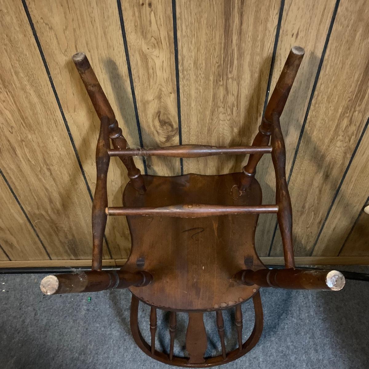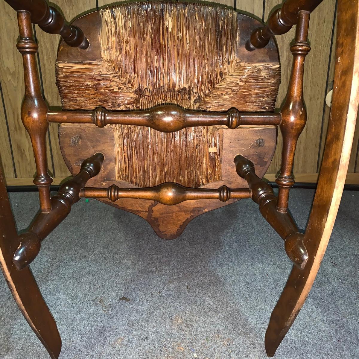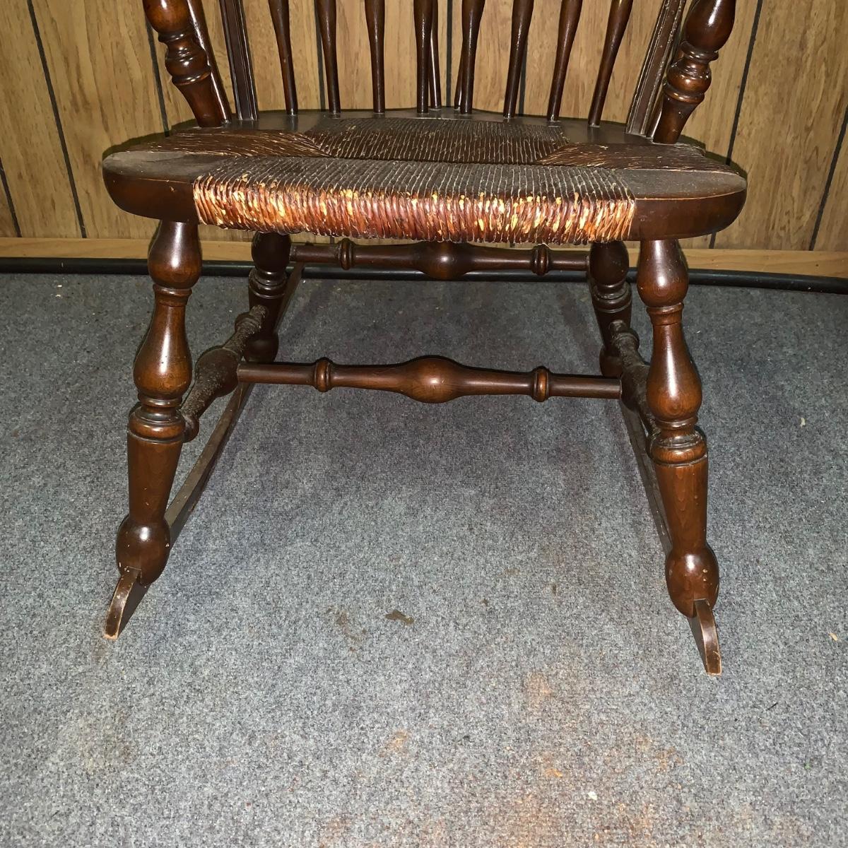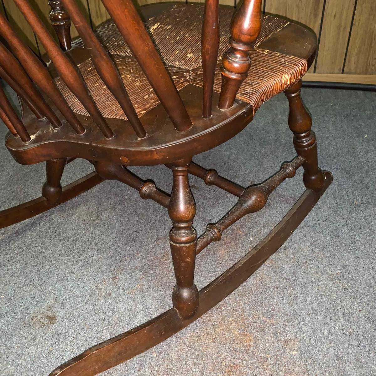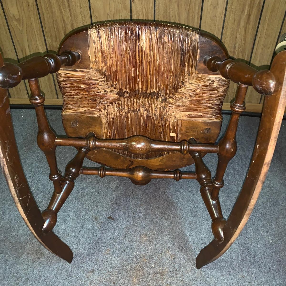 Lot 153: Vintage Windsor Rocking Chair w/Rush Seat & Wooden Accent Chair