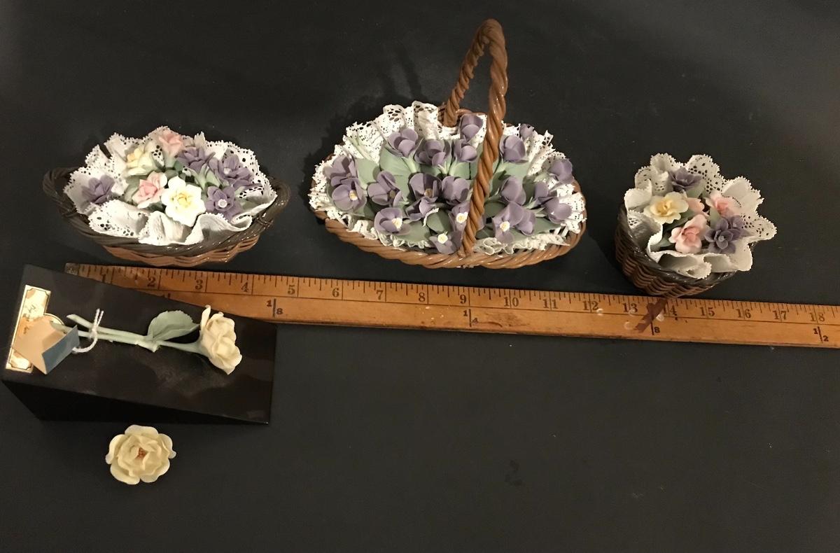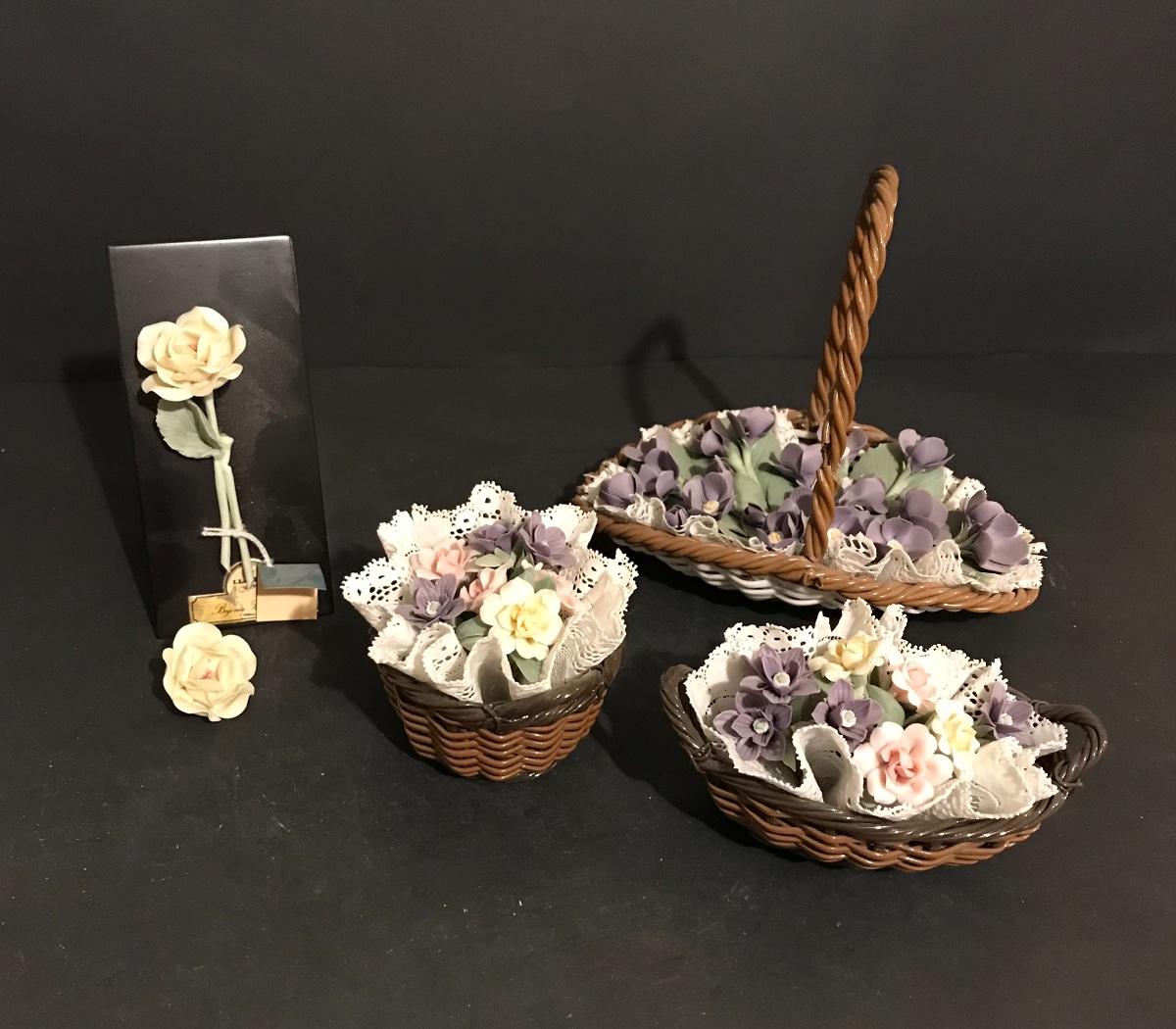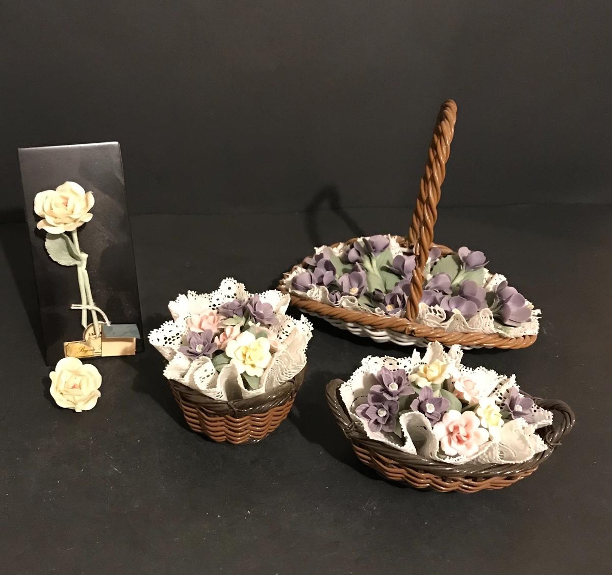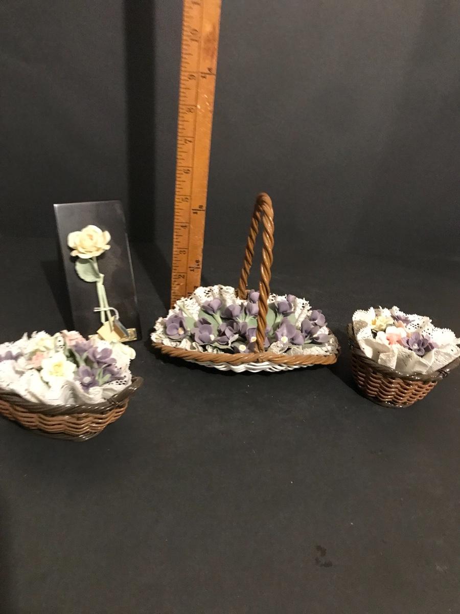 Lladro Flowers AS-IS. One piece has a broken off flowers and the baskets of flowers have broken and missing petals and porcelain lace pieces. Please see photos. All items have been inspected and any damages or imperfections have been photographed and noted to the best of our knowledge and ability. It is the responsibility of the buyer to inspect all pictures, as they are the best representation of the items. The pictures show condition, measurements if taken, and what is included in the lot. Upon pickup, it is the responsibility of the buyer to inspect their items prior to leaving the premises. Once the items leave the premises, there will be no refunds or returns. Buyers are also responsible for bringing their own boxes and packing materials for their items. Thank you.