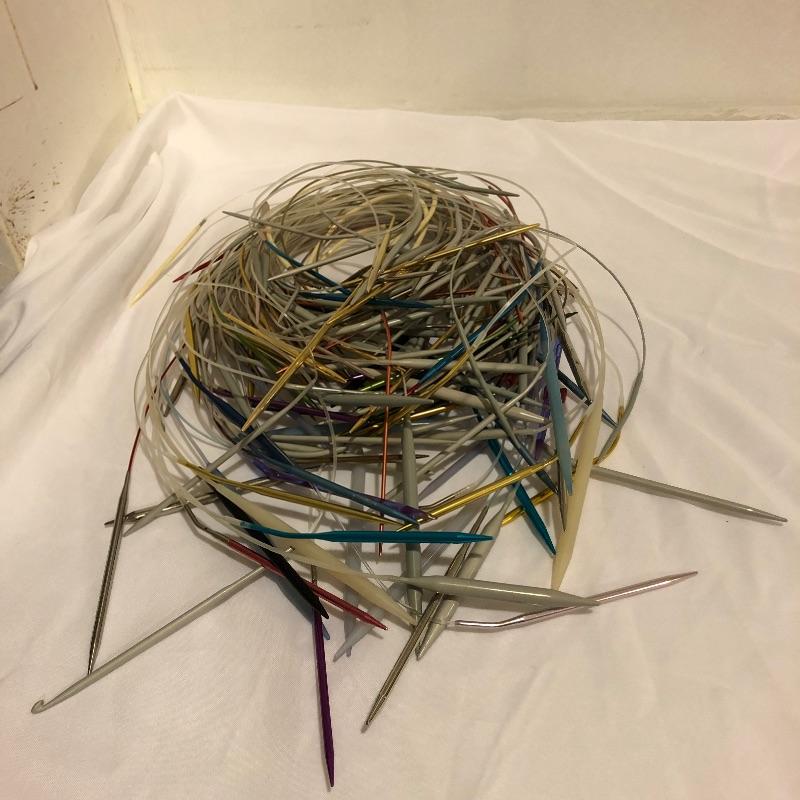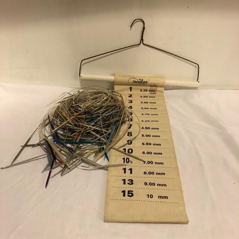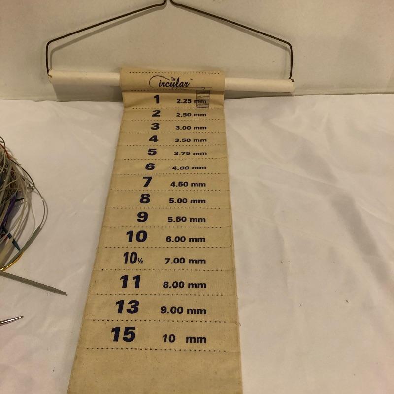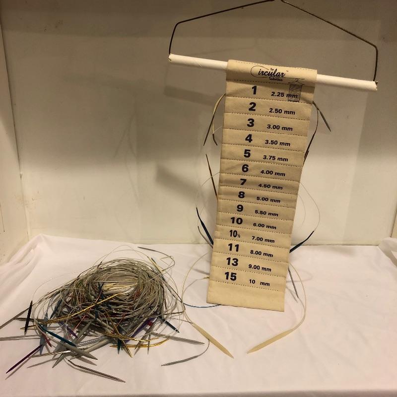Store this huge assortment of circular needles in the accompanying The Circular Solution hanging case and you will always be able to grab the right needle for the job! From short to long, there appears to be a needle for every project here. Boye and Susanne’s are two of the name brands in this lot. Longest needle measures approximately 36”.