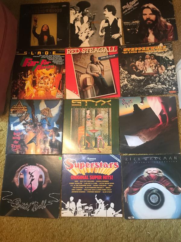 Three boxes of records from all over the spectrum with some classical & country but mostly Classic Rock. Some were obviously stored in a moist environment, but seem to be ok. See photos. Local pick up only. Call if you’d like more specific questions about quality of certain titles.