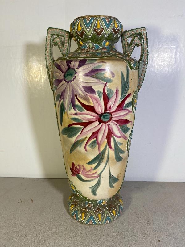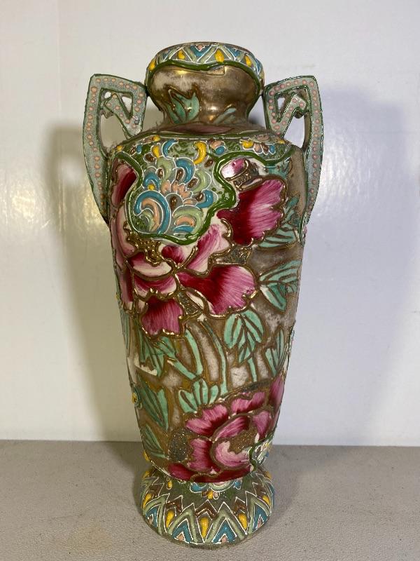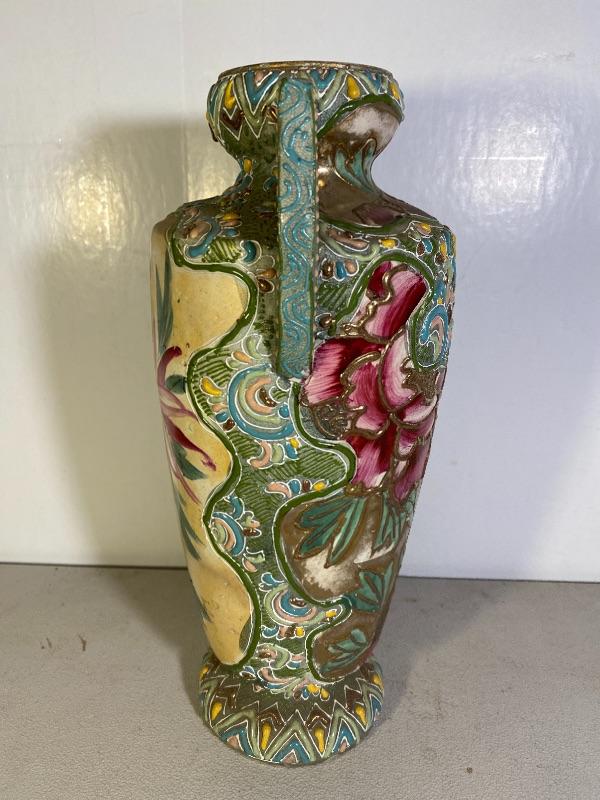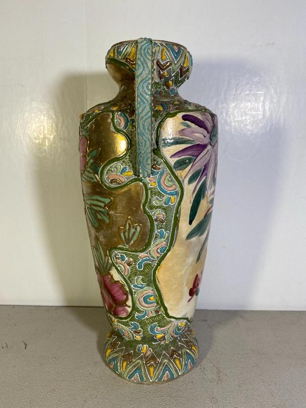Lot# 153 Colorful Vase Gold Accent Floral Hand Painted