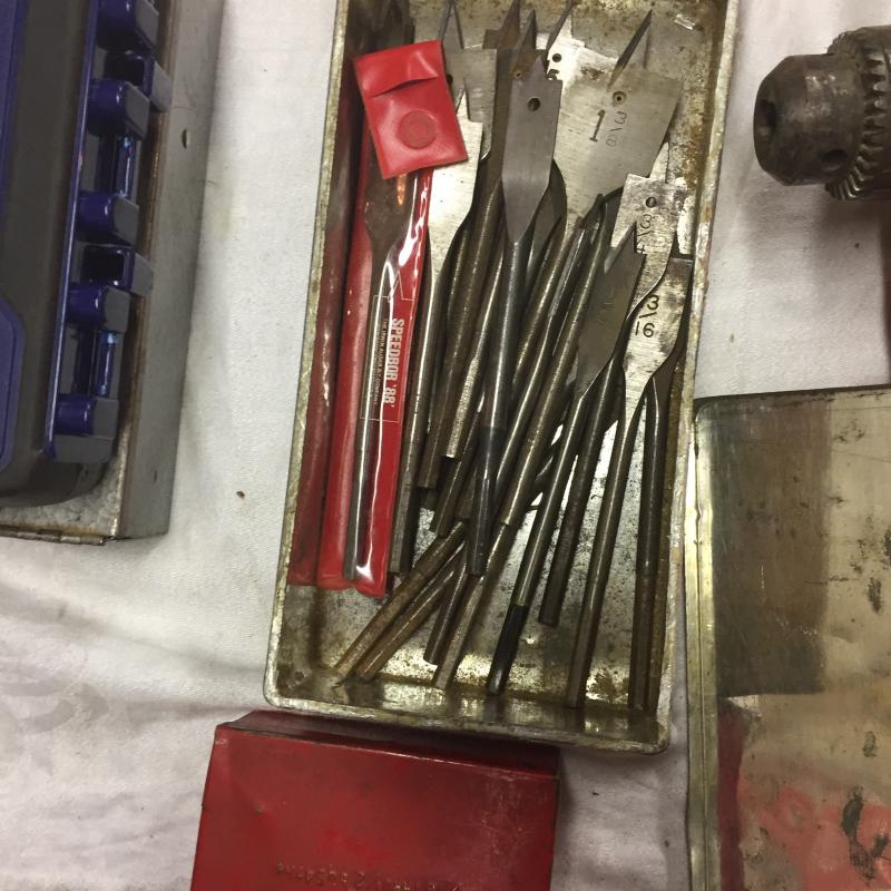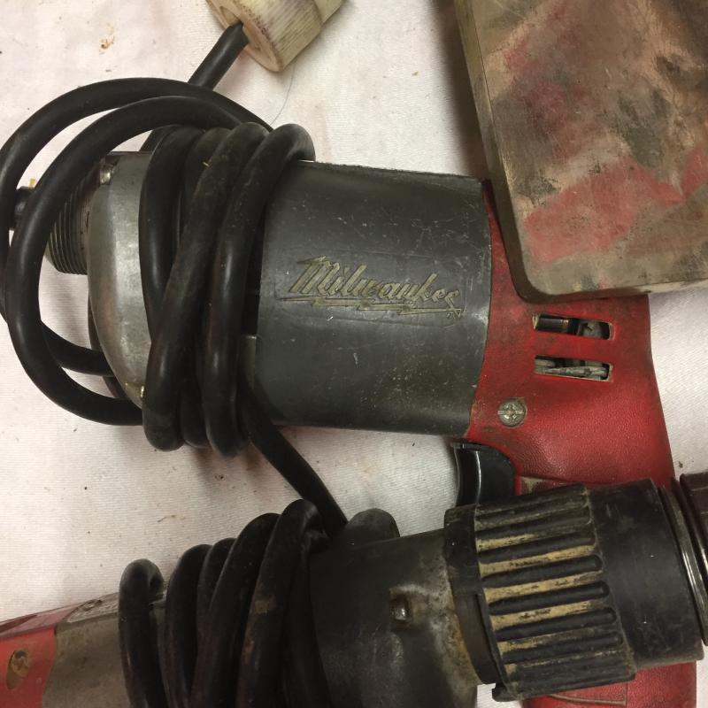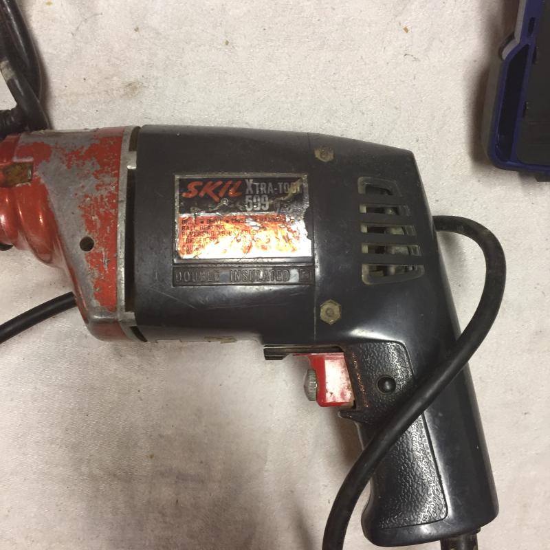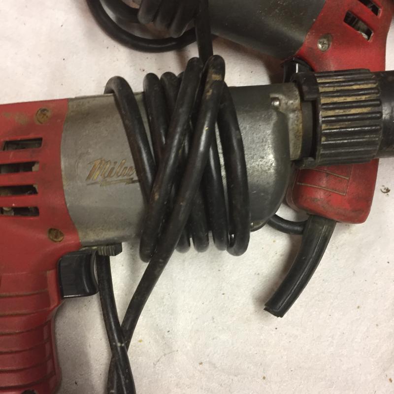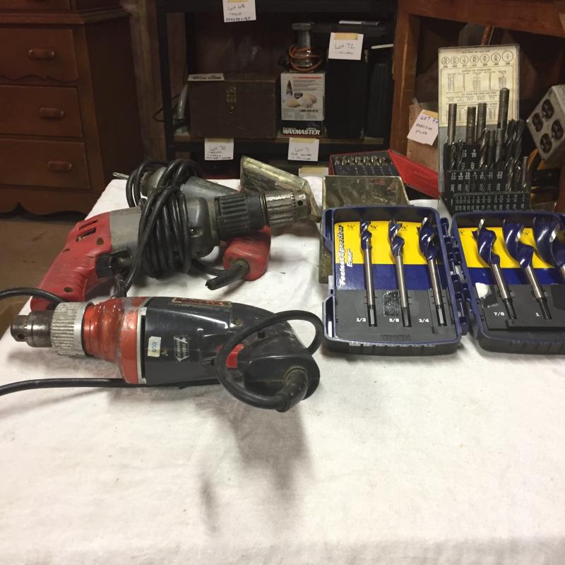 2 Milwaukee Drills 1 Skil Drill and Assortment of Drill Bits