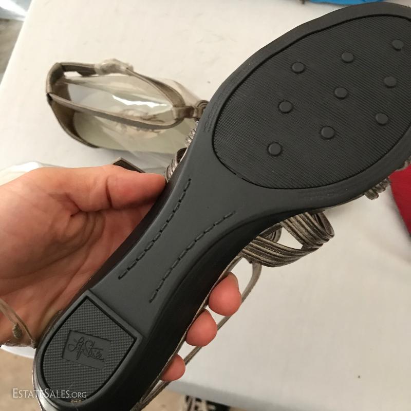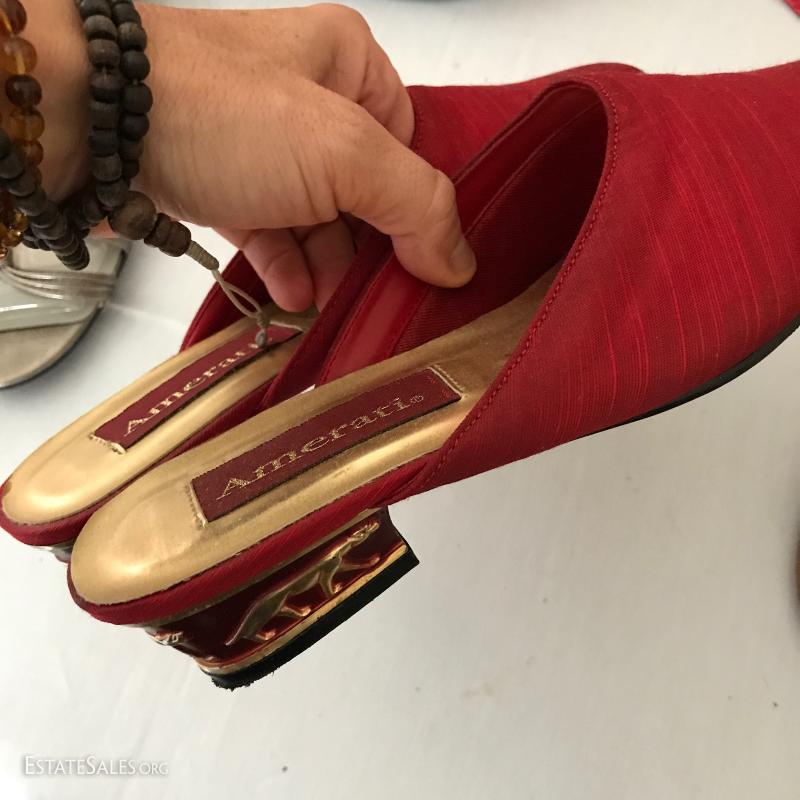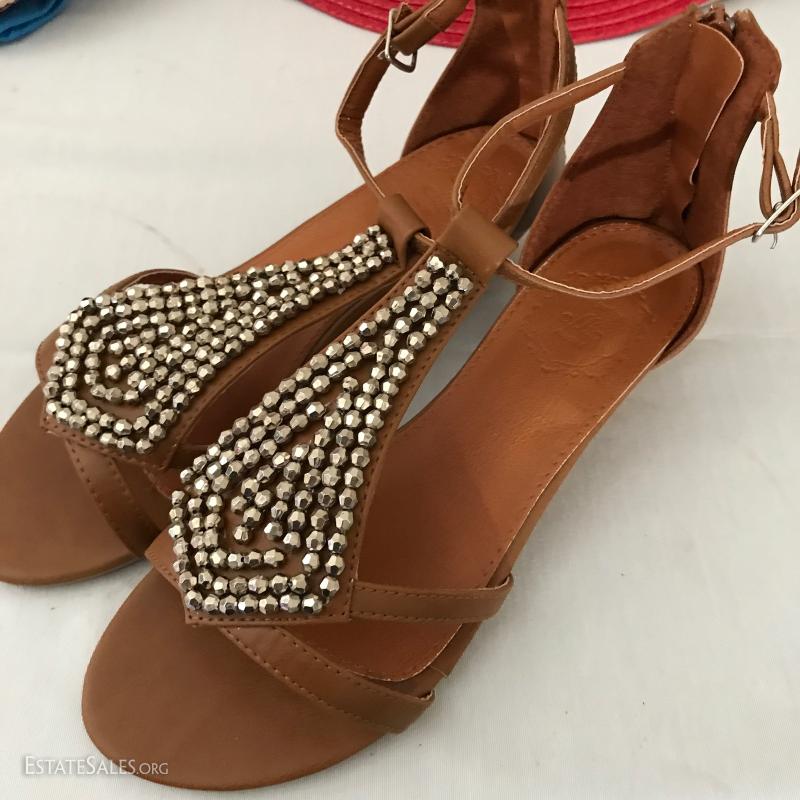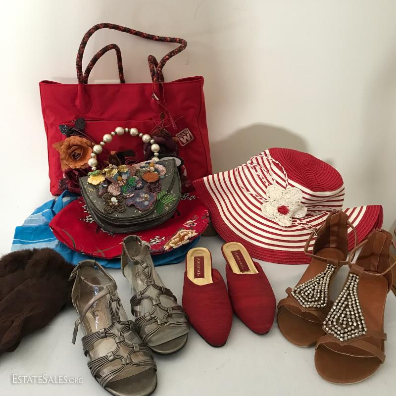 Greet autumn with style! Lot includes two hats, 5 purses, a pair of leather and rabbit fur gloves, and three pairs of shoes, sizes 7 and 7.5. See photos for details. From home of a smoker.