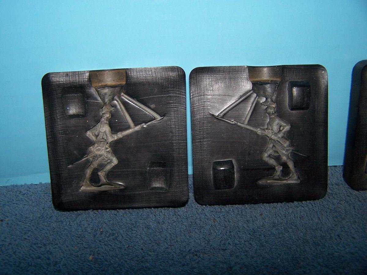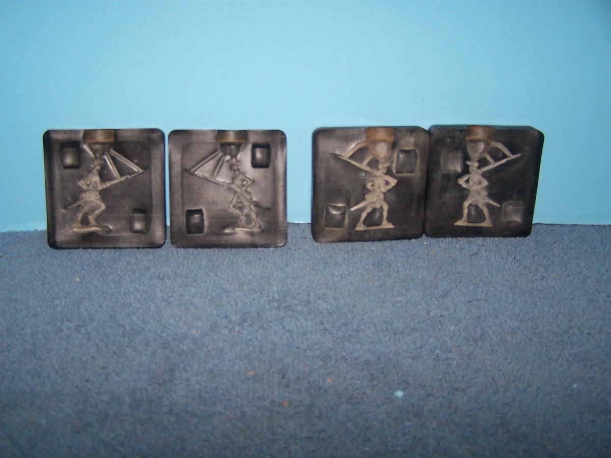 THESE ARE GREAT 2 RUBBER MOLDS REVOLUTIONARY SOLDIERS! UNMARKED.. 2 3/4'' SQ... LIGHT WEAR..