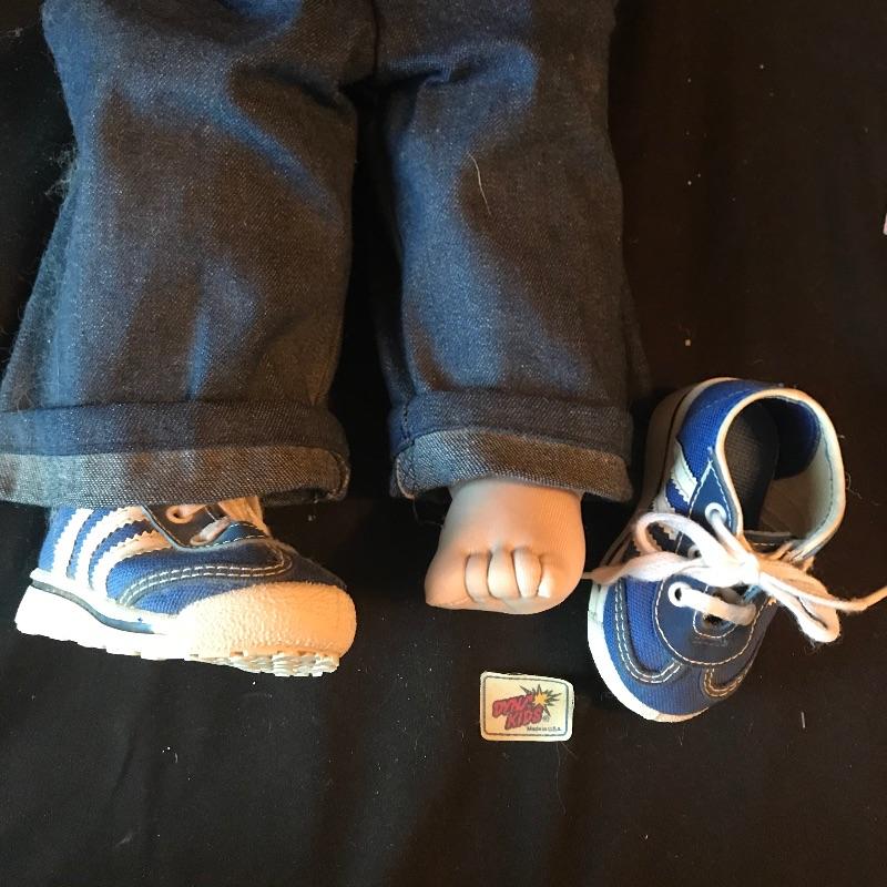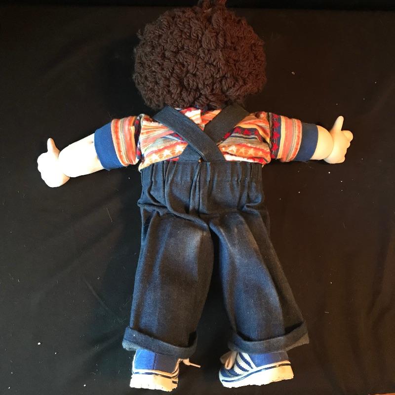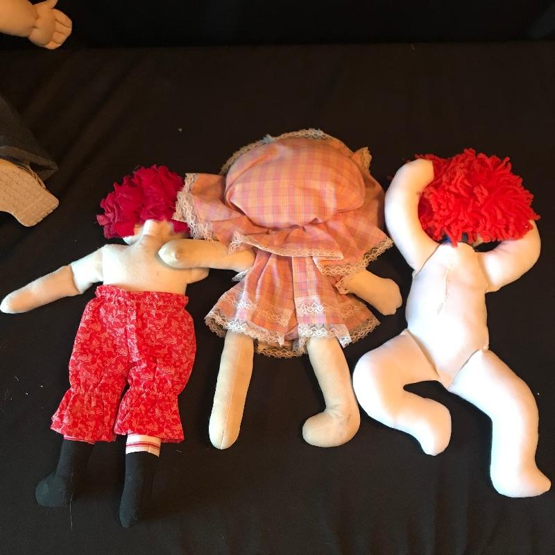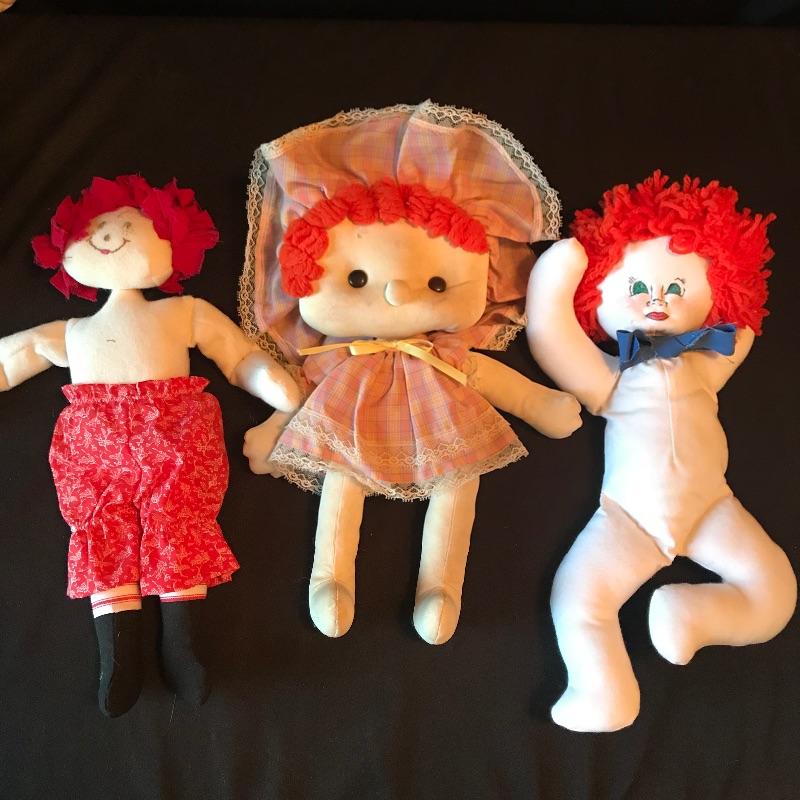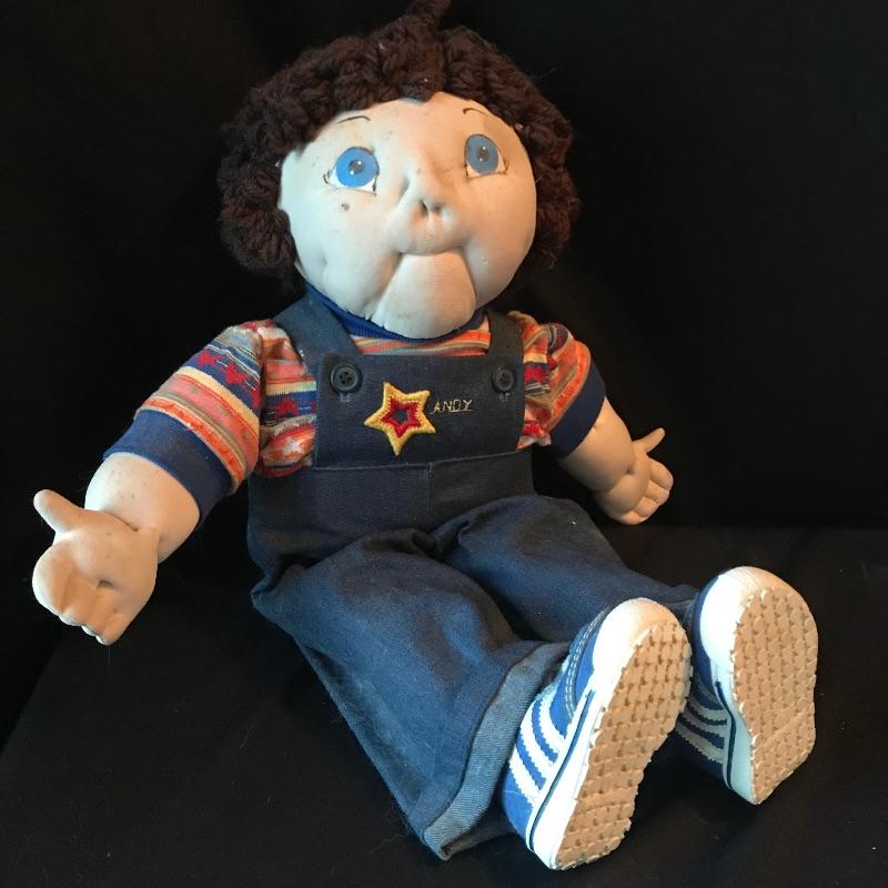 Mattel 1988 CK 47 Cabbage Patch style doll with hard body and signature on bottom. Signature is slightly different than the usual Xavier Roberts. Doll is 13” and has hair instead of the usual yarn. We’ve paired up four other handmade dolls! Andy, is a 19” Cabbage Patch replica with the cutest belly button and toes. Andy has a small patch of hair that needs to be re-sewn. Three smaller red and orange haired dolls all handmade and ready for their forever home. See photos. Shipping available.
