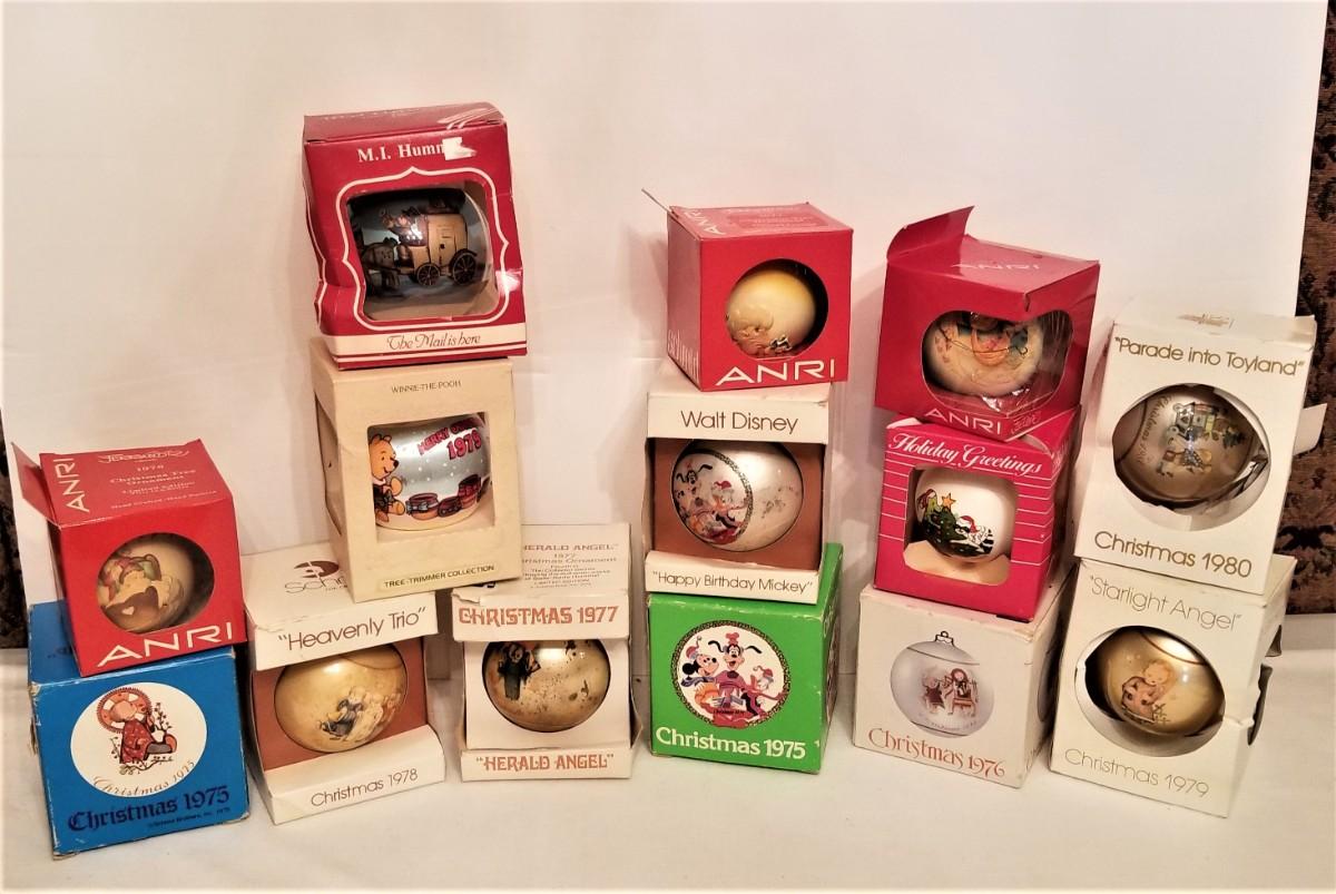 Lot #153  Lot of Vintage Christmas Ornaments - 14 in all - Anri, Schmid, Disney, Hummel