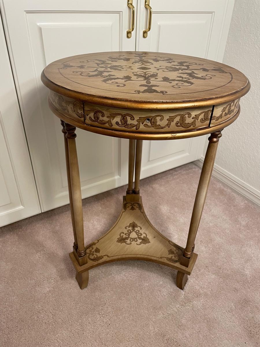 Round side table. Painted with 1 drawer.