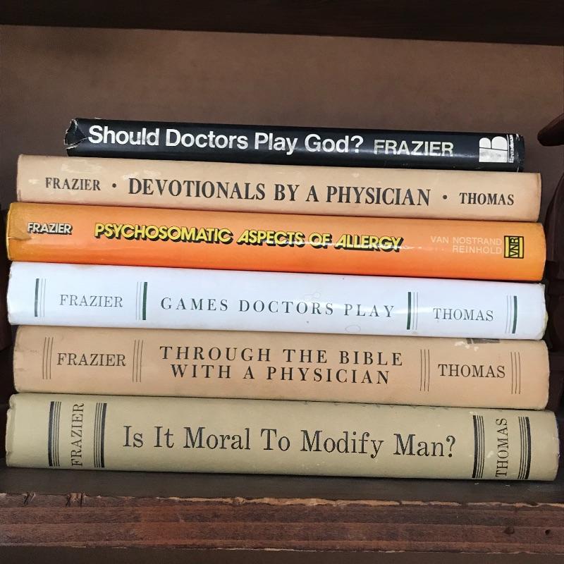 Lot contains six books by Dr. Claude Frazier, five of which are signed. Dr. Frazier was a pioneer of medicine with regards to allergies. He was from