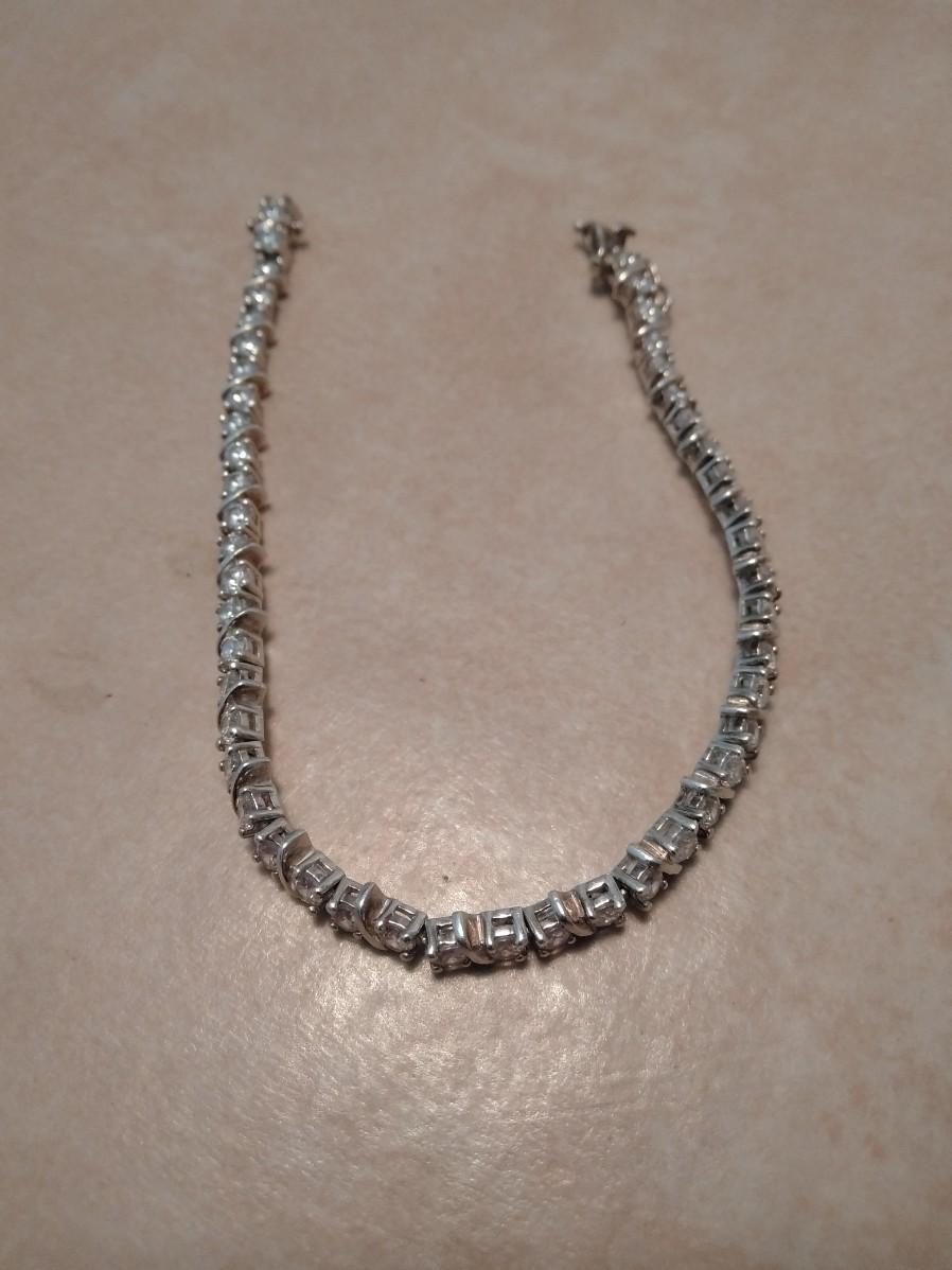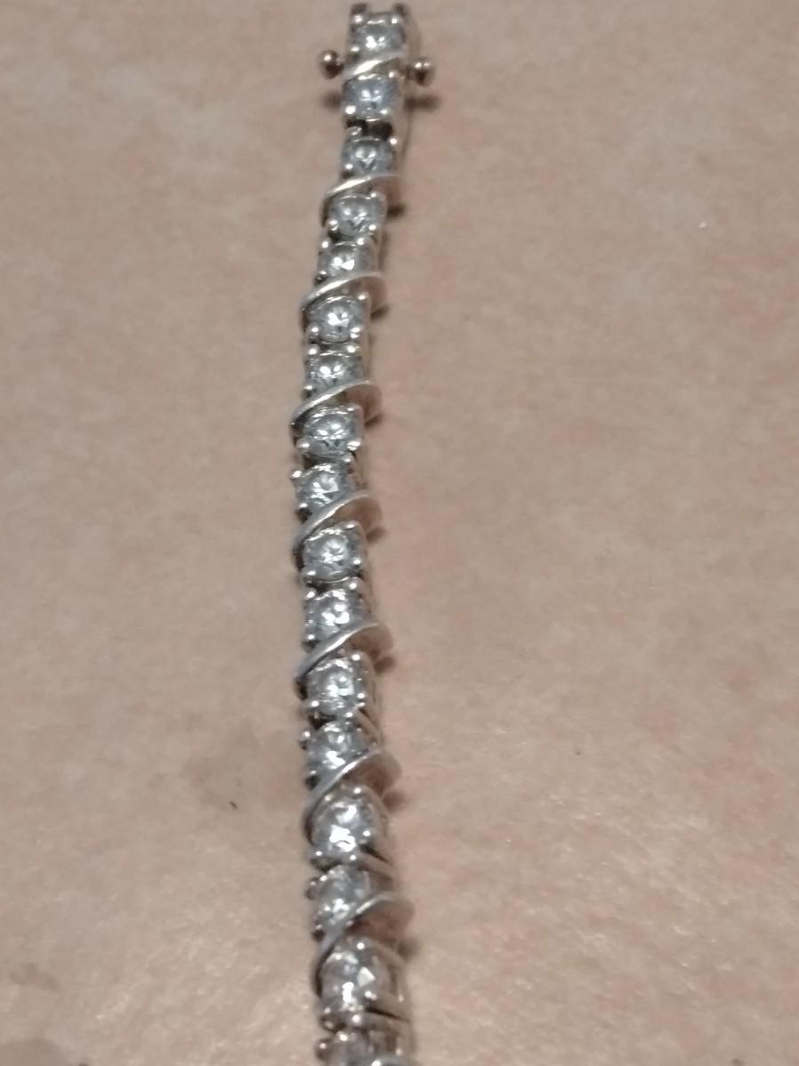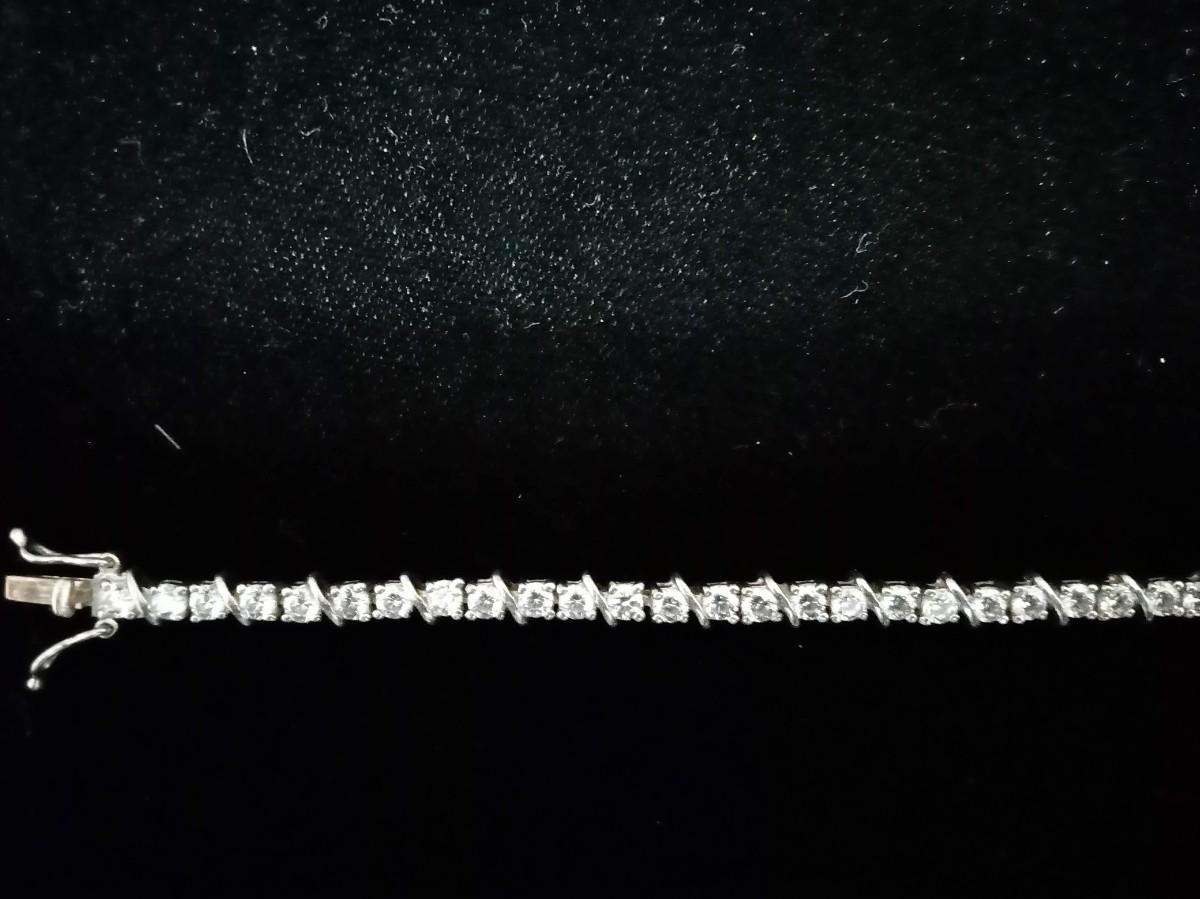 LOT 153 STERLING SILVER AND RHINESTONE TENNIS BRACELET