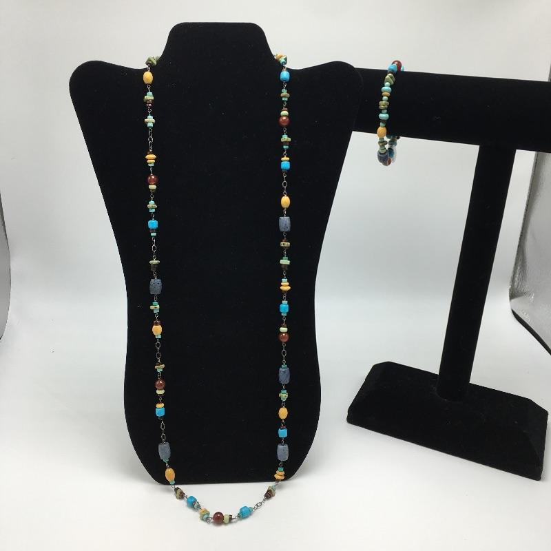Silpada Necklace in sterling silver, carnelian, howlite, sponge coral, yellow jasper and tigers eye necklace that measures 35” long and a bracelet in Carnelian, howlite, sponge coral, yellow jasper, sterling silver and tigers eye stretch bracelet that fits up to an 8” wrist.