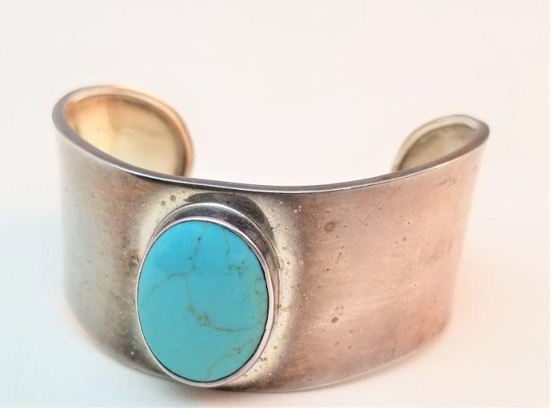 Lot #153 Sterling Silver & Turquoise Cuff Bracelet