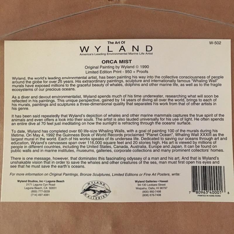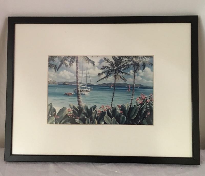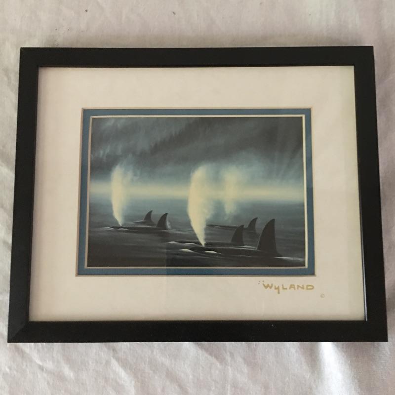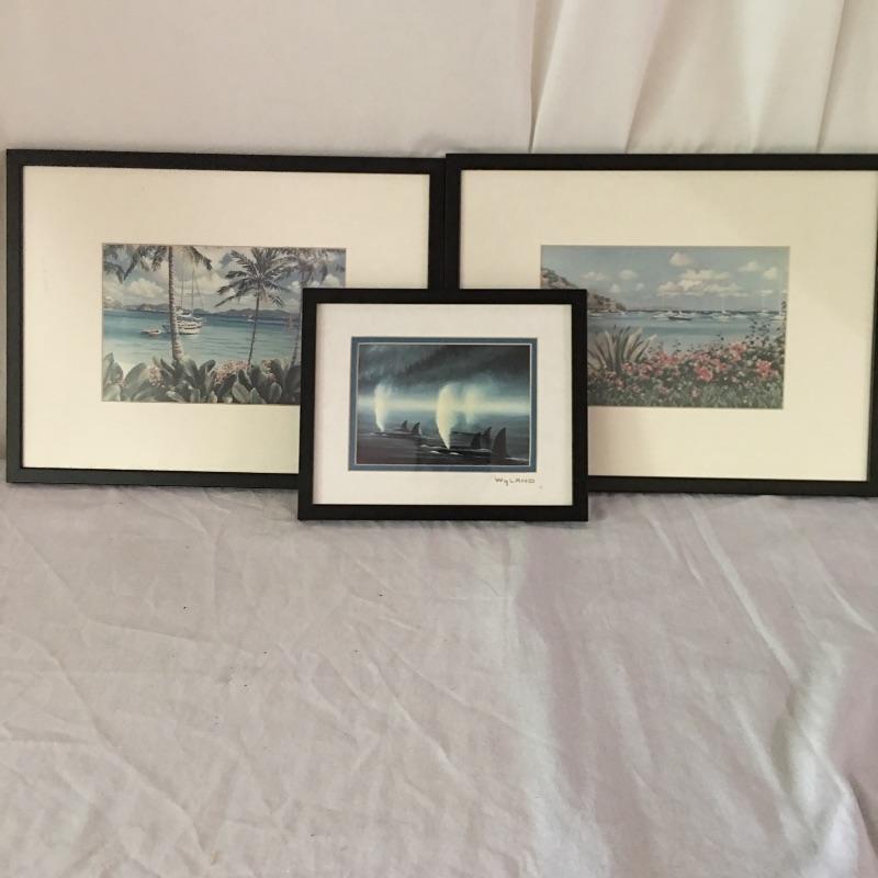 Trio of framed and matted artwork includes “Orca Mist” print by Wyland and two other unsigned pieces of artwork. All three will add charm to your walls. Largest frames measure 13” x 17”.