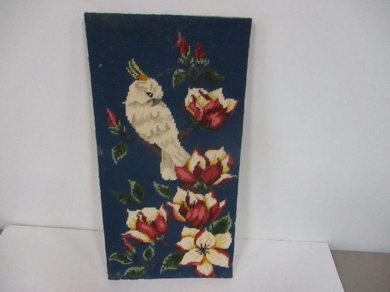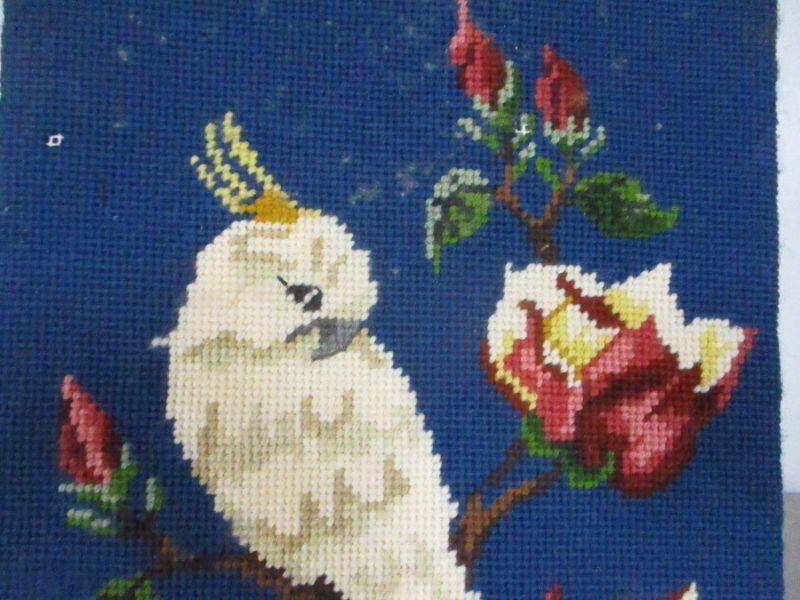 Lot 153 - Unframed Bird & Flower Needlepoint Wall Hanging 10" x 20"