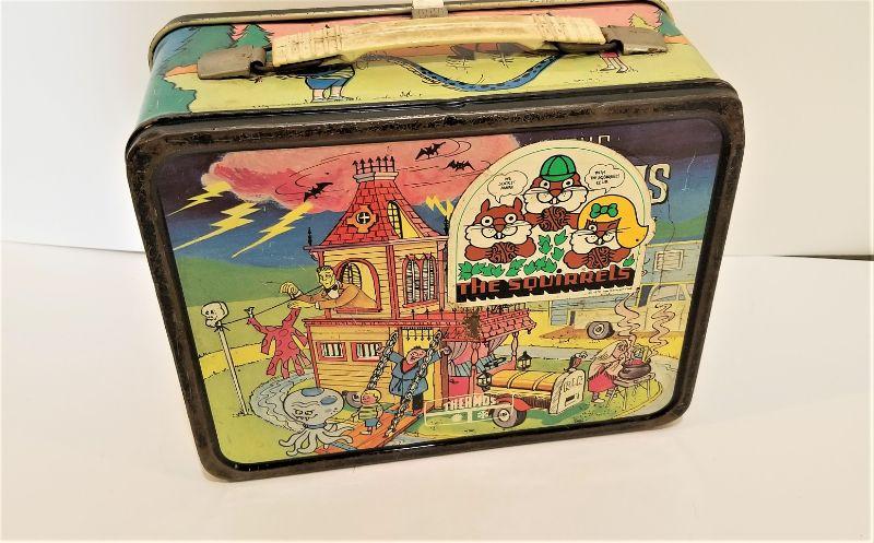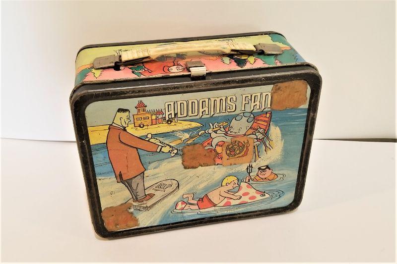 Vintage Adams Family lunch box - no thermos. Used condition, as shown. Some rusting and scuffs.