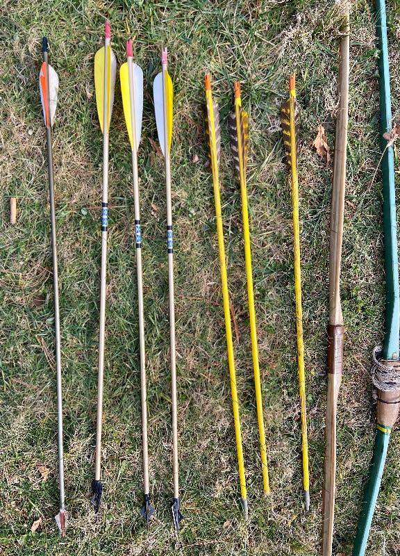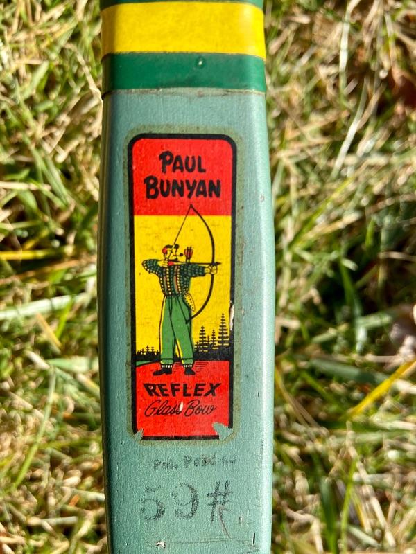 Vintage Paul Bunyon Reflex fiberglass bows out 64 inches long, a second wooden bow, 7 arrows and carrying case. MHW Please see all pictures for content of the lot, condition of the lot, and measurements if taken. Pictures are the best representation of the items listed and items are untested unless indicated in description. Thank you for looking and have fun bidding!