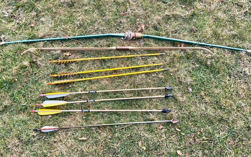 Lot 153: Paul Bunyan Long Bow & Vintage Archery set