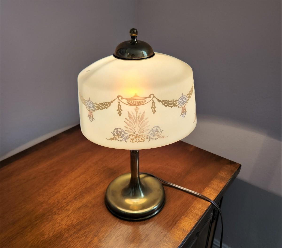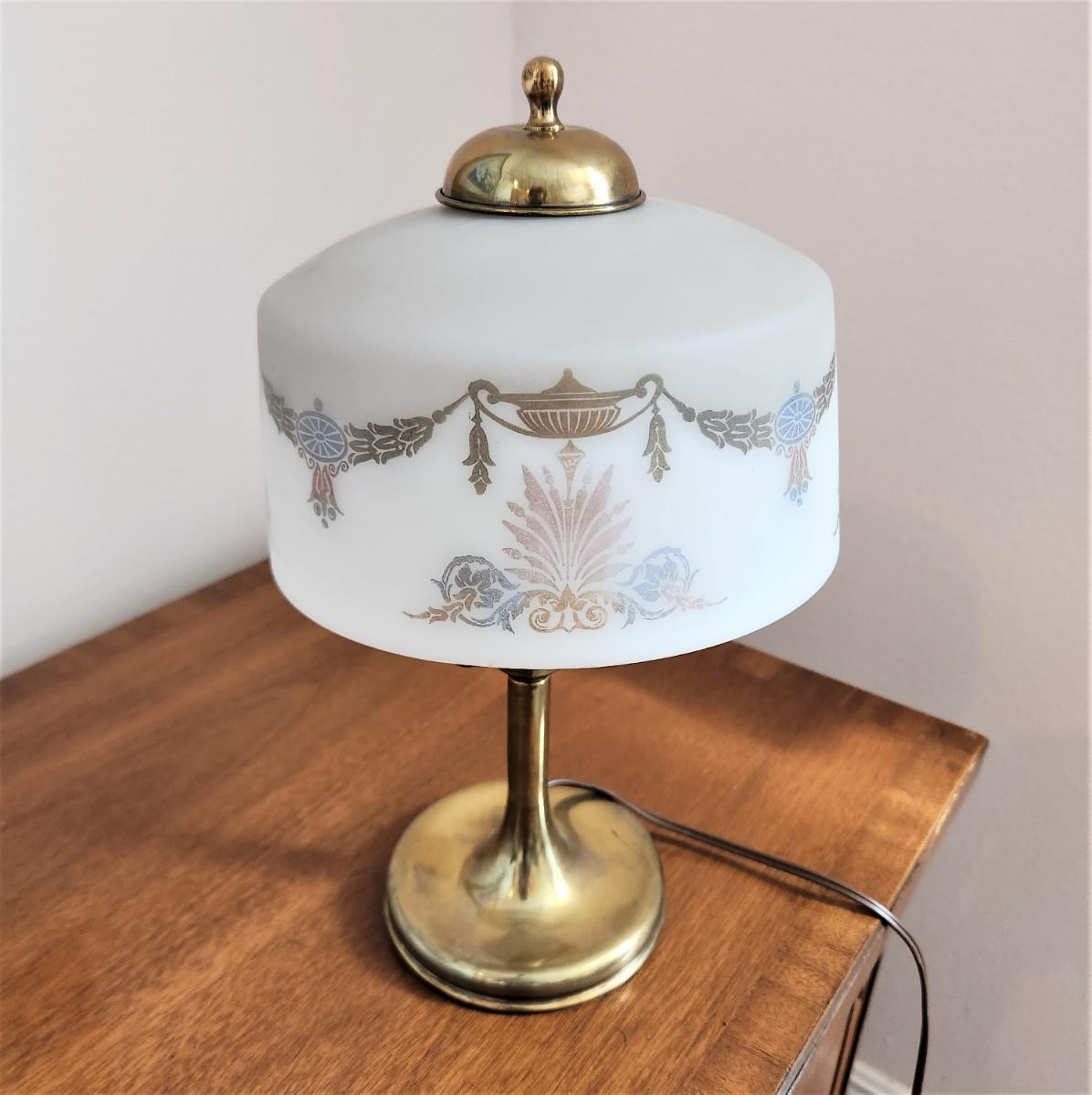Charming vintage frosted glass boudoir table lamp - good working condition. 13" tall.