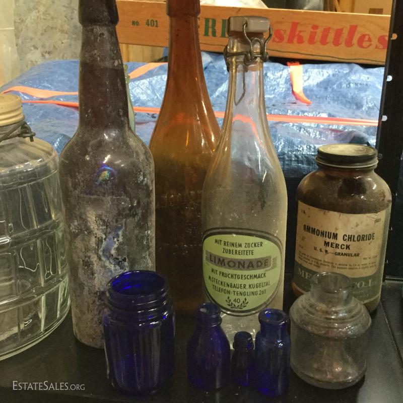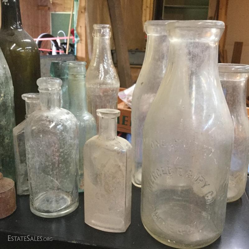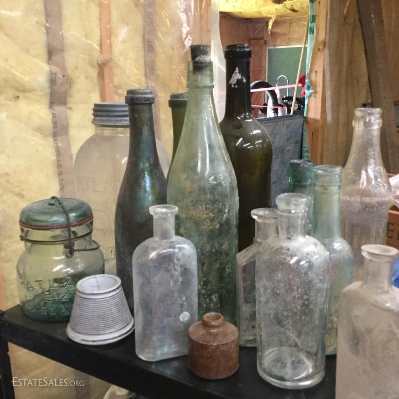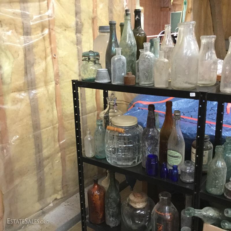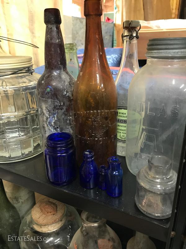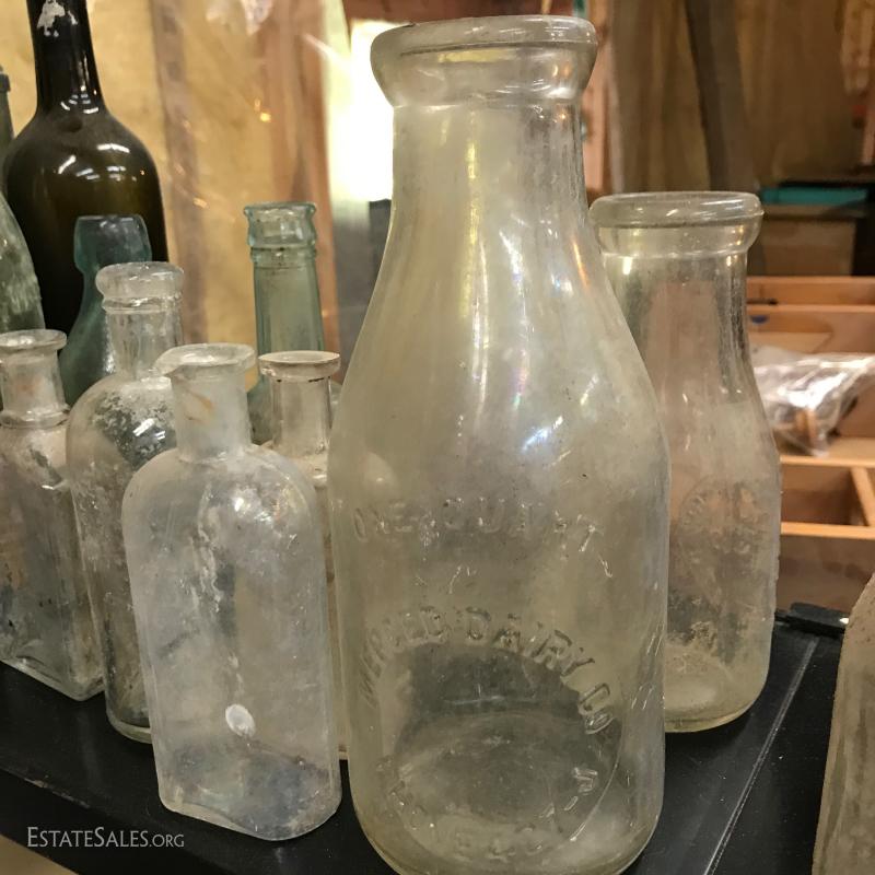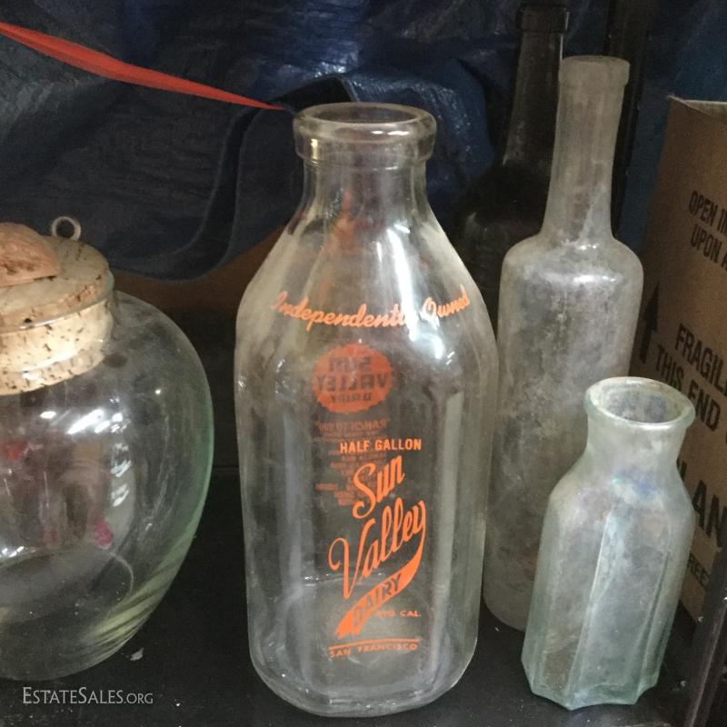 Beautiful glass bottle collection including milk bottles, Atlas jars, colored glass bottles, Clorox brown bottles, and small bottles, most of which were found in the San Francisco Bay area. Includes large Colorado brewing bottle. This lot is available for local pick up only in Hendersonville, NC.