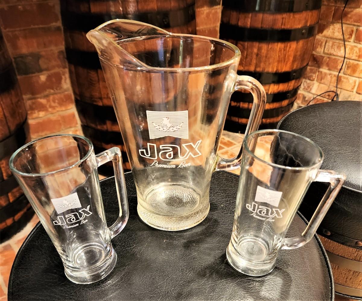 Lot #153  Vintage JAX BEER Pitcher and two Matching mugs