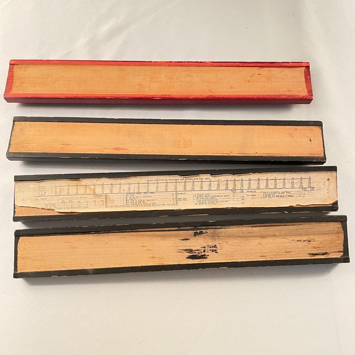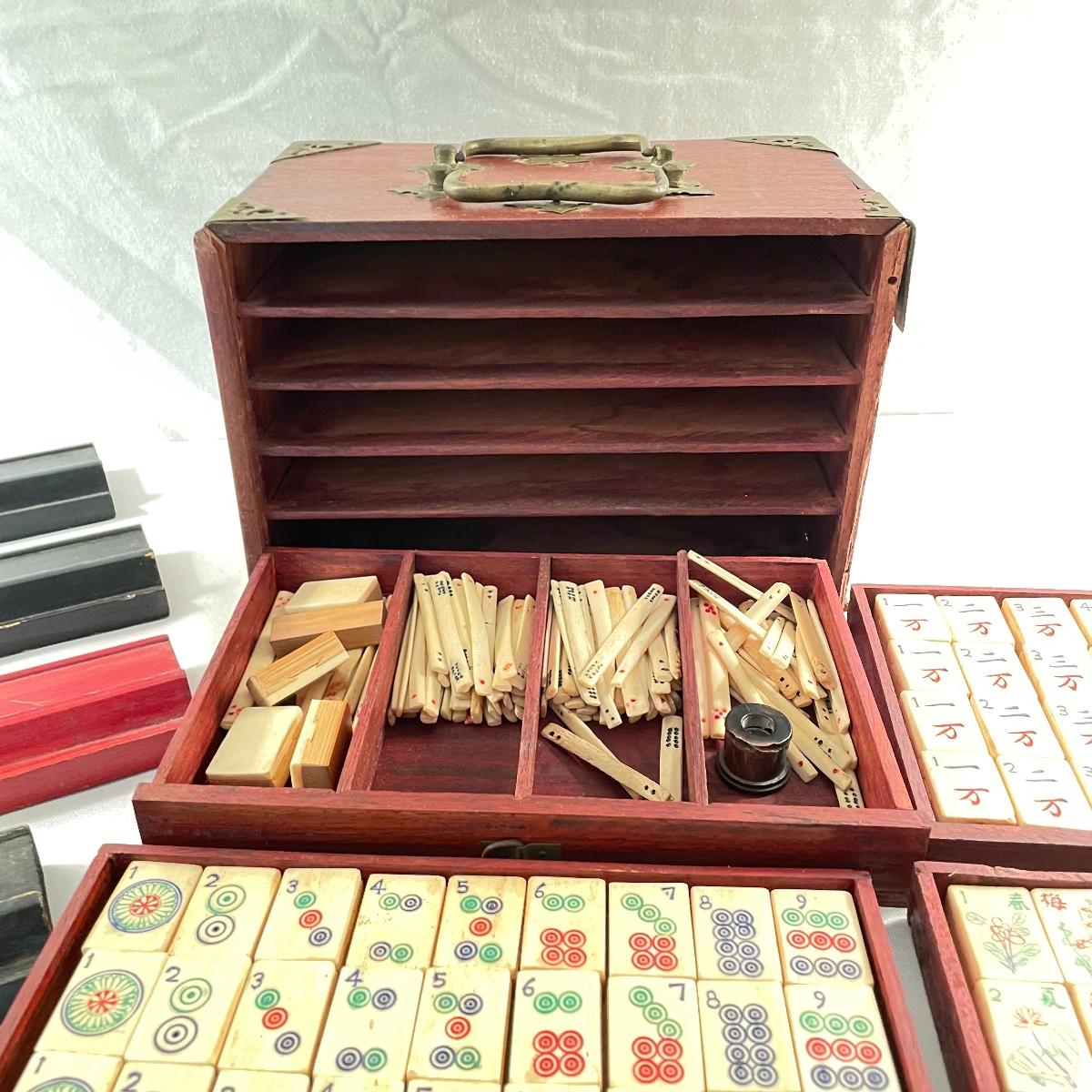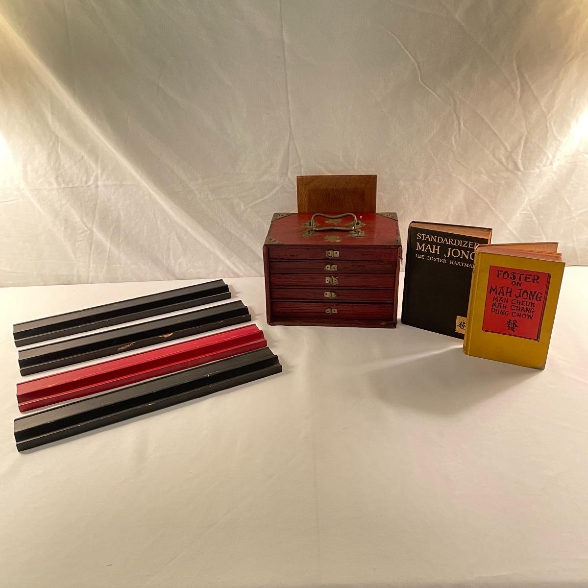 We’ve all found a few new hobbies this last year, here’s a hobby you can start with three more friends! This is what appears to be a full and organized set of awesome vintage Mah Jong tiles and tile racks. We’ve also included two instructional books with multiple variations of the game so you’ll never get bored. The wooden box holding the tiles is made in China and measures 9.5” x 6.25” x 6.5”. It has a missing groove for the door of the cabinet, currently the door stays on well enough, but it may be worth while to fix. See images. Shipping available.