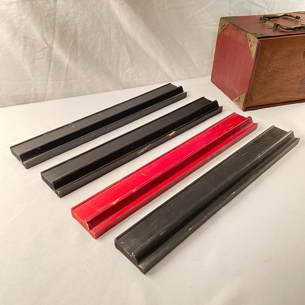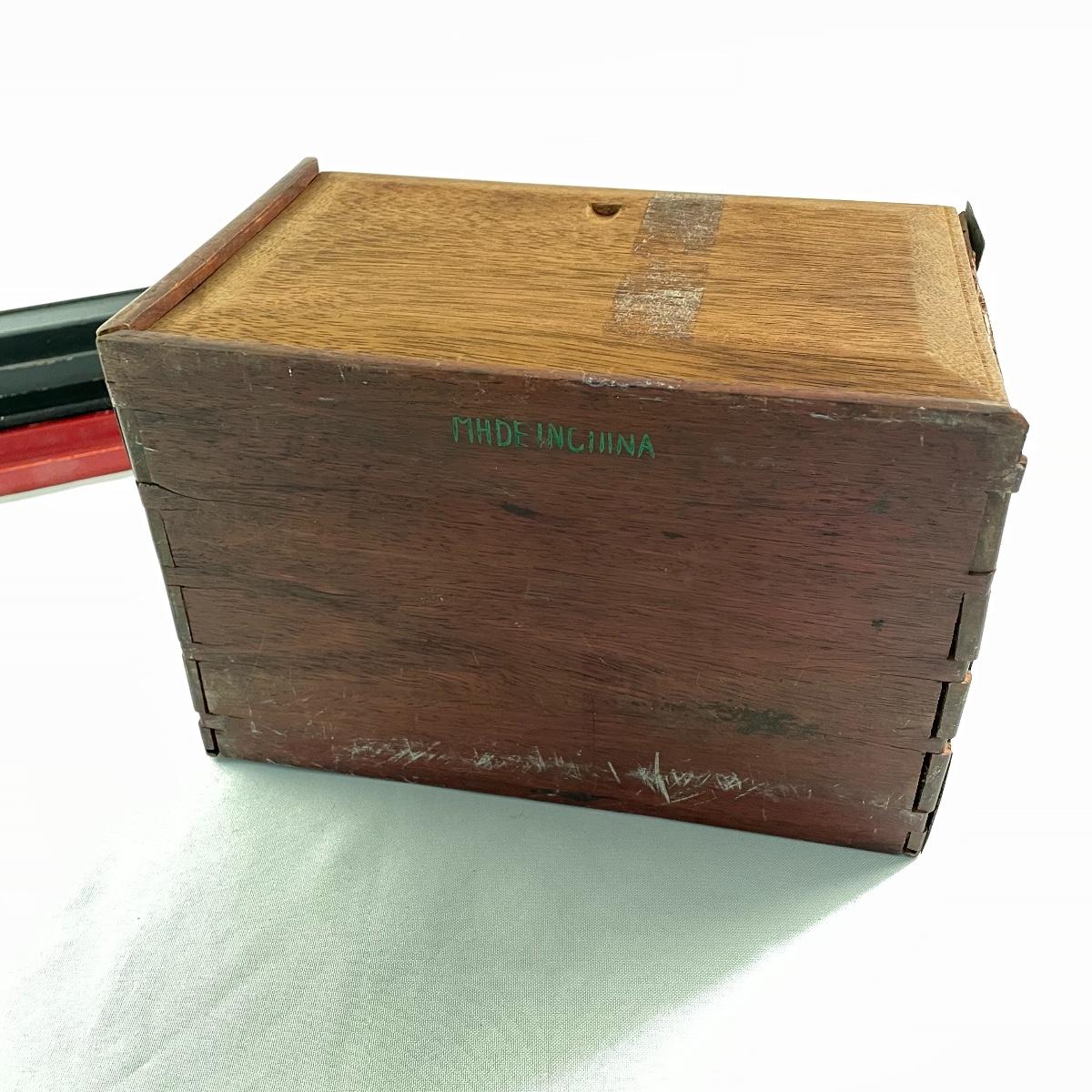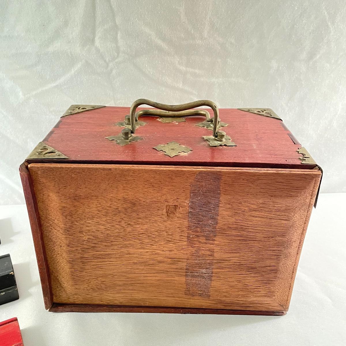 We’ve all found a few new hobbies this last year, here’s a hobby you can start with three more friends! This is what appears to be a full and organized set of awesome vintage Mah Jong tiles and tile racks. We’ve also included two instructional books with multiple variations of the game so you’ll never get bored. The wooden box holding the tiles is made in China and measures 9.5” x 6.25” x 6.5”. It has a missing groove for the door of the cabinet, currently the door stays on well enough, but it may be worth while to fix. See images. Shipping available.