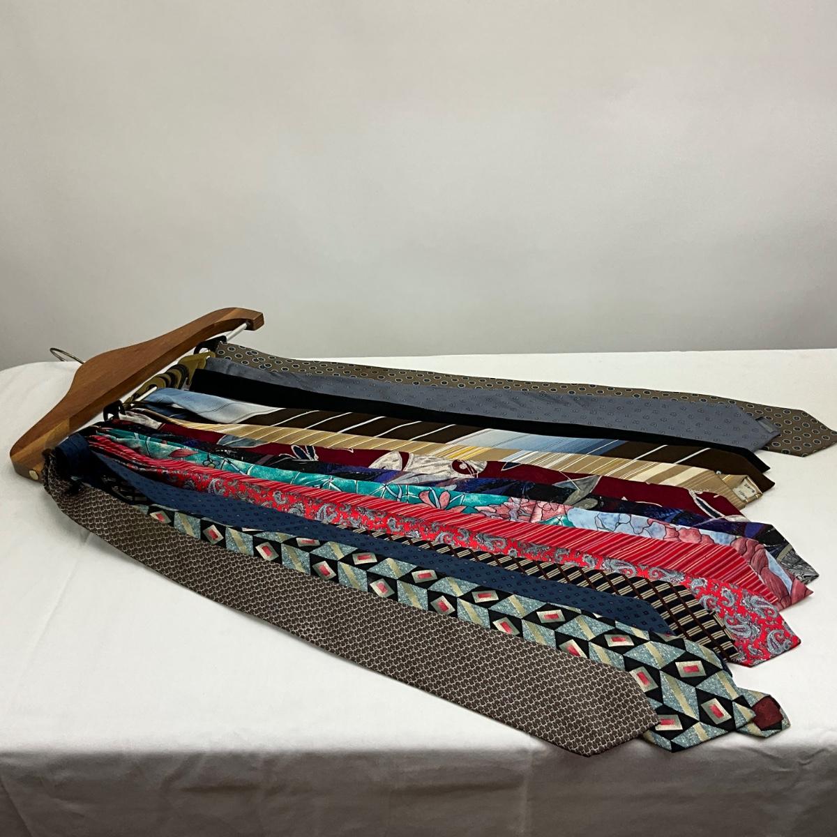 Lot  1532  Mens Necktie Lot & Vintage Necktie Hanger ( 13 various brands )