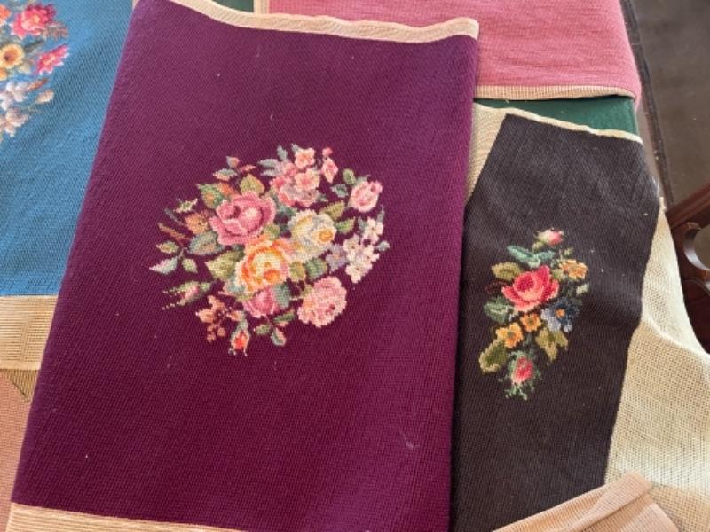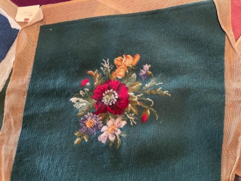 Lot 153DR. Twelve vintage needlepoint completed works for foot stools, pillows, seat cushions, etc.--Was $175 - -NOW $65