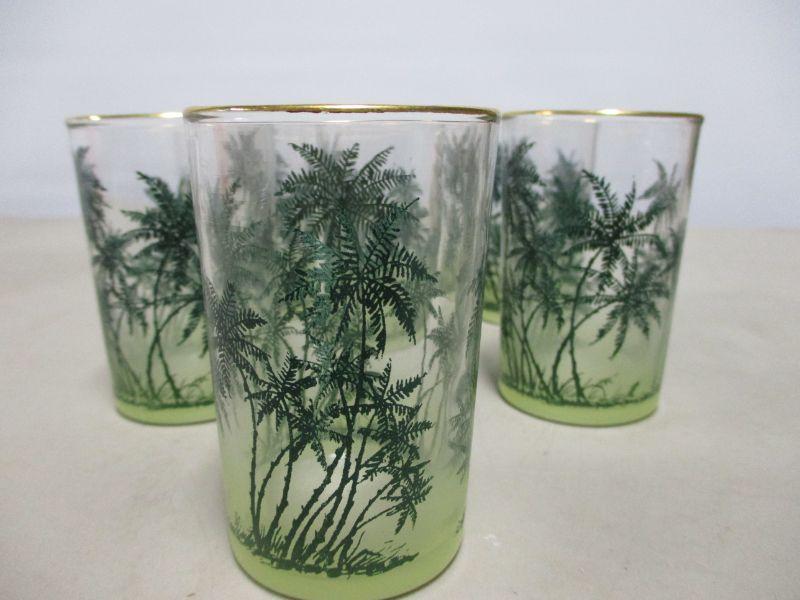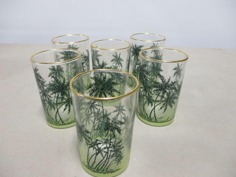 Lot 154 - Gold Rimmed Juice Glasses W/ Plam Trees