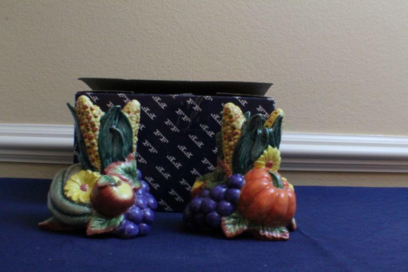 LOT #154: Pair of Fitz and Floydâ„¢ Holiday Vegetable/Fruit Bouquet Figures