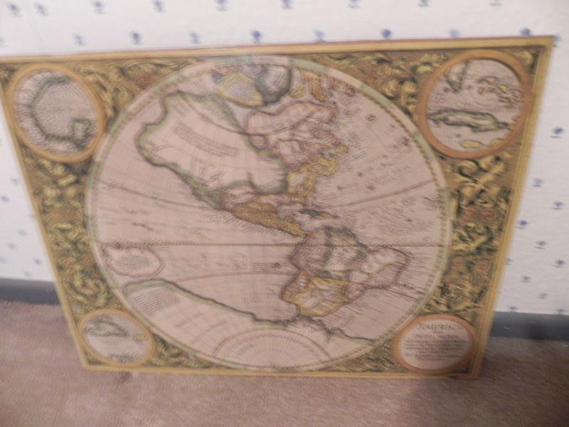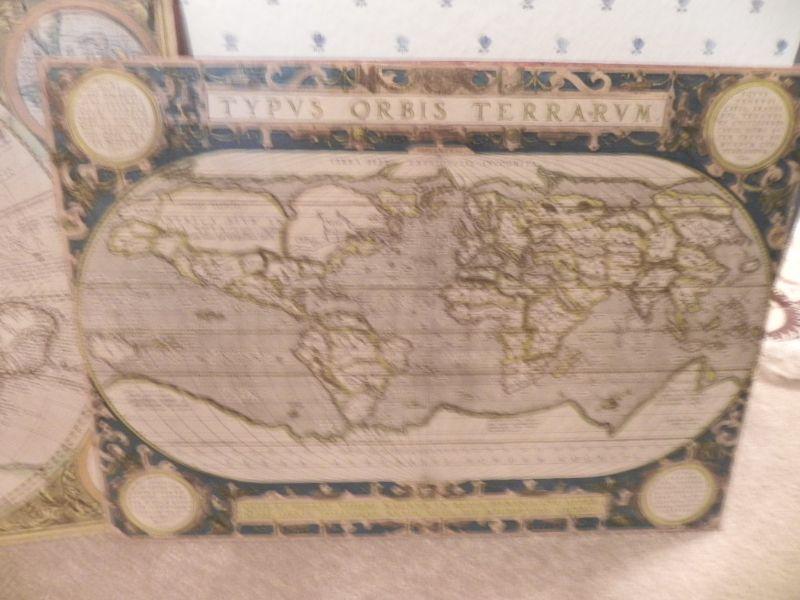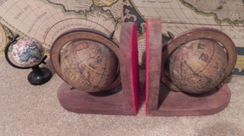GLOBE BOOKENDS, SMALL GLOBE AND 2 PICTURES OF MAPS