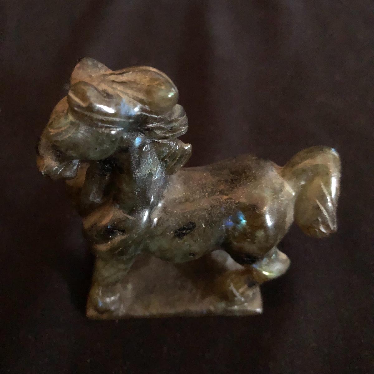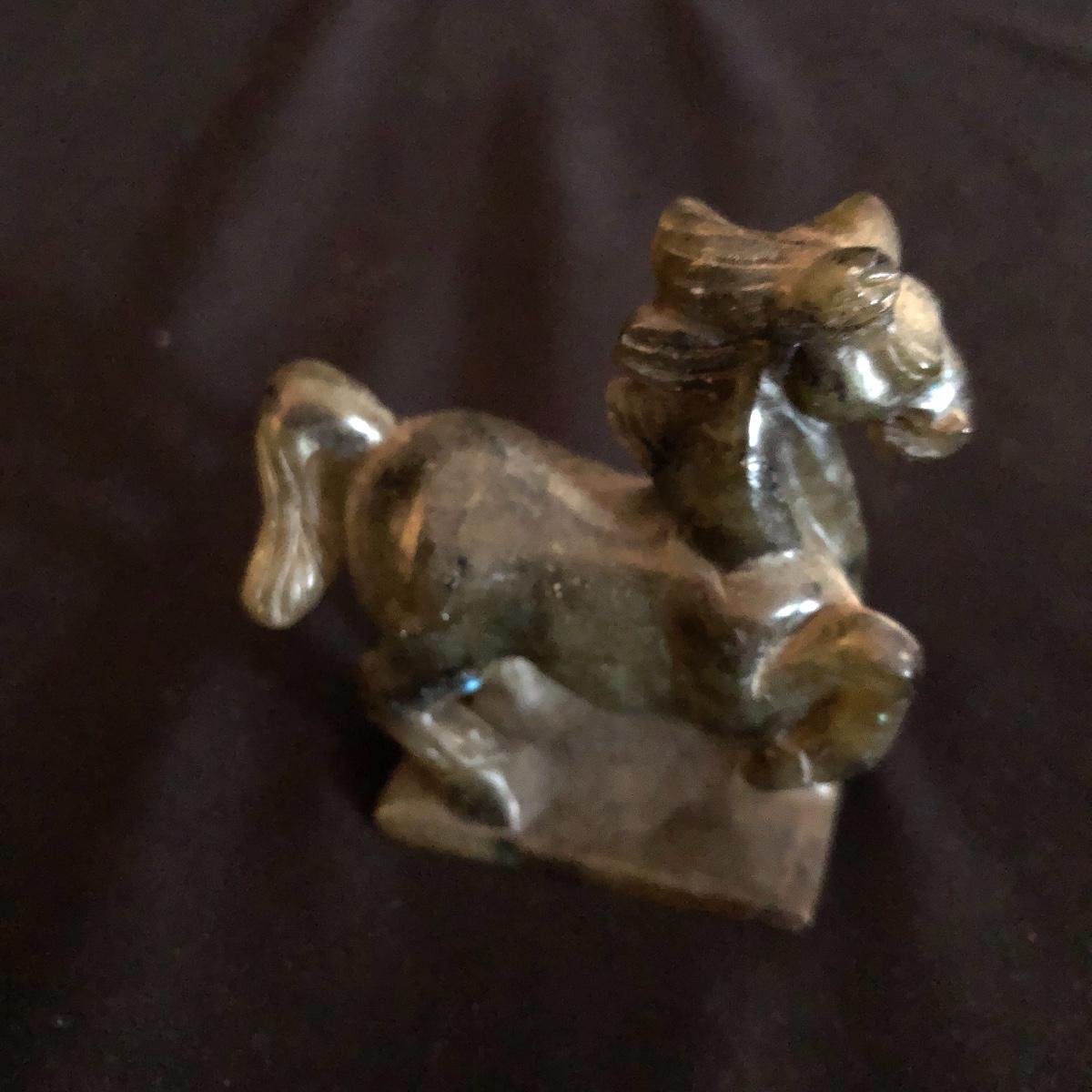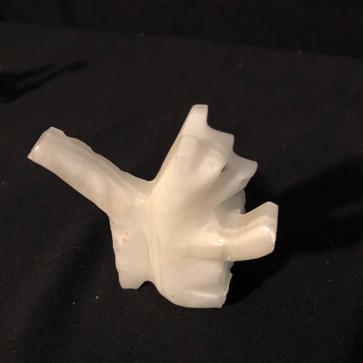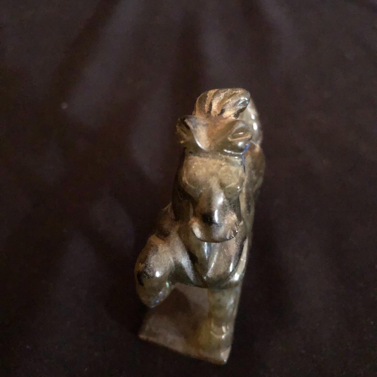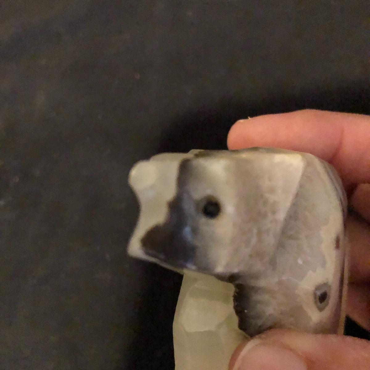Enjoy the beauty of marble with this lot. It includes three plants, two Aztec style book ends, four figurines and a black marble base. The plants consist of a flower pot that is 6” tall and two trees on stone bases. The leaves or petals on the trees appear to be gems or rocks with stone bases. The pink and white book ends are approximately 4.5” tall. The polar bear appears to have a chip on his face and The squirrel is missing one of its’ front arms. Shipping Available.