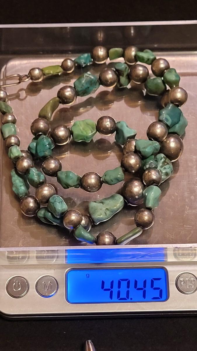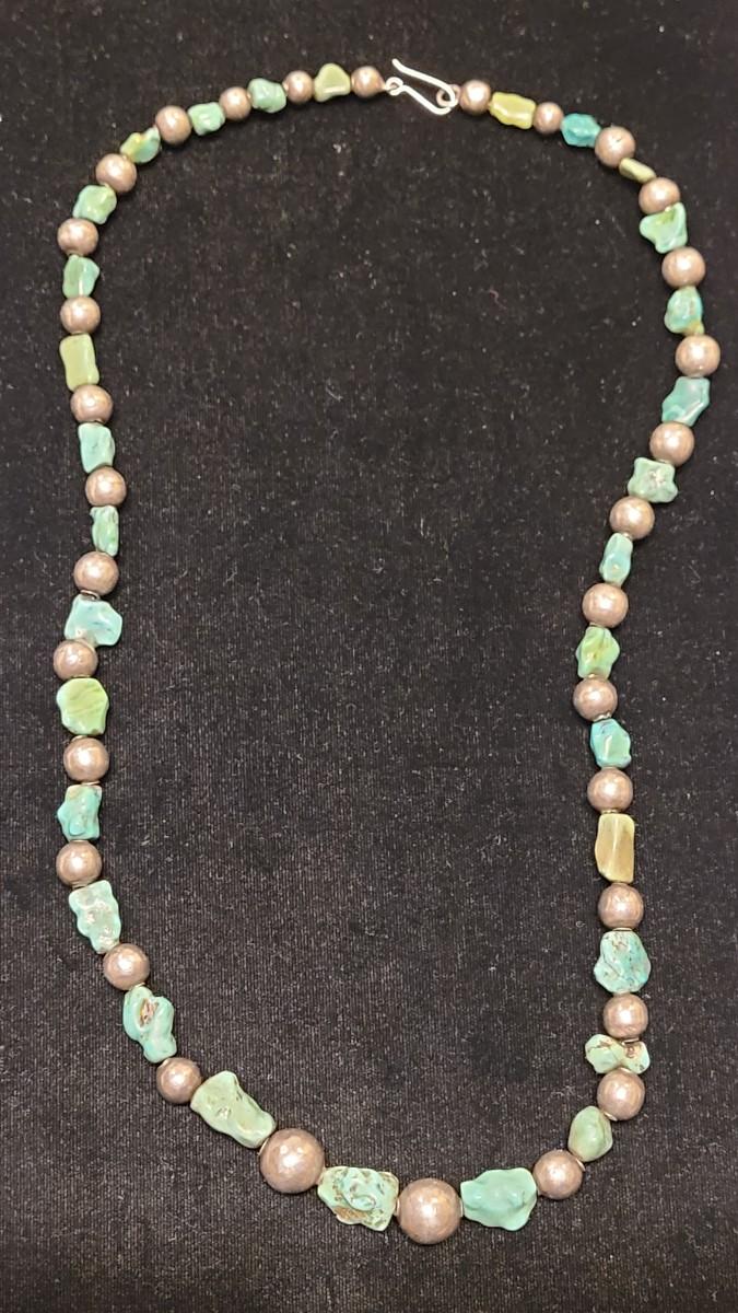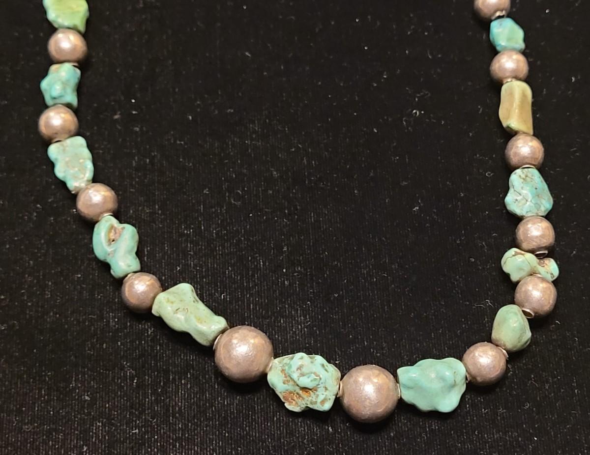 Lot 154: Old Pawn Sterling Beads and Turquoise Necklace
