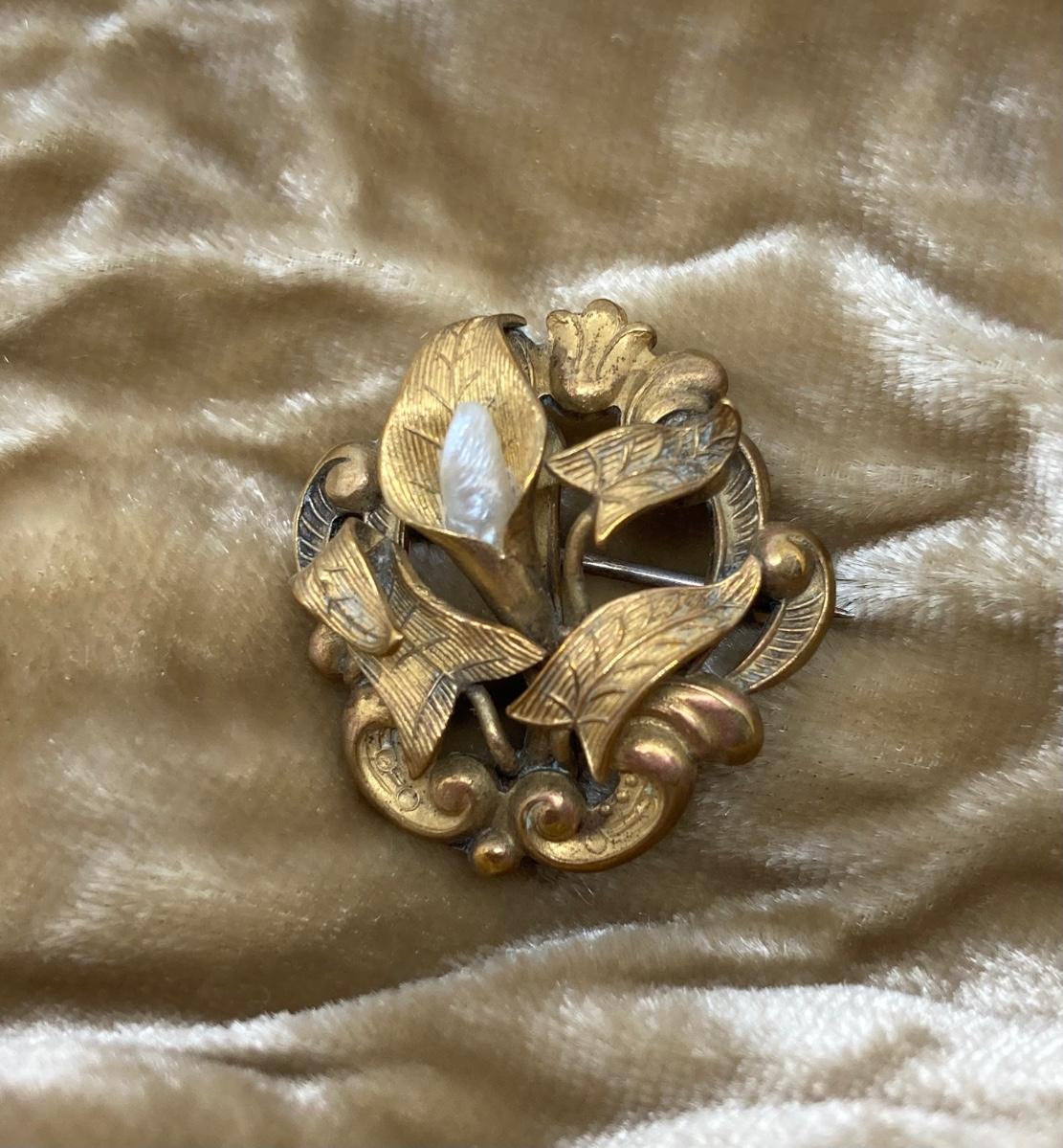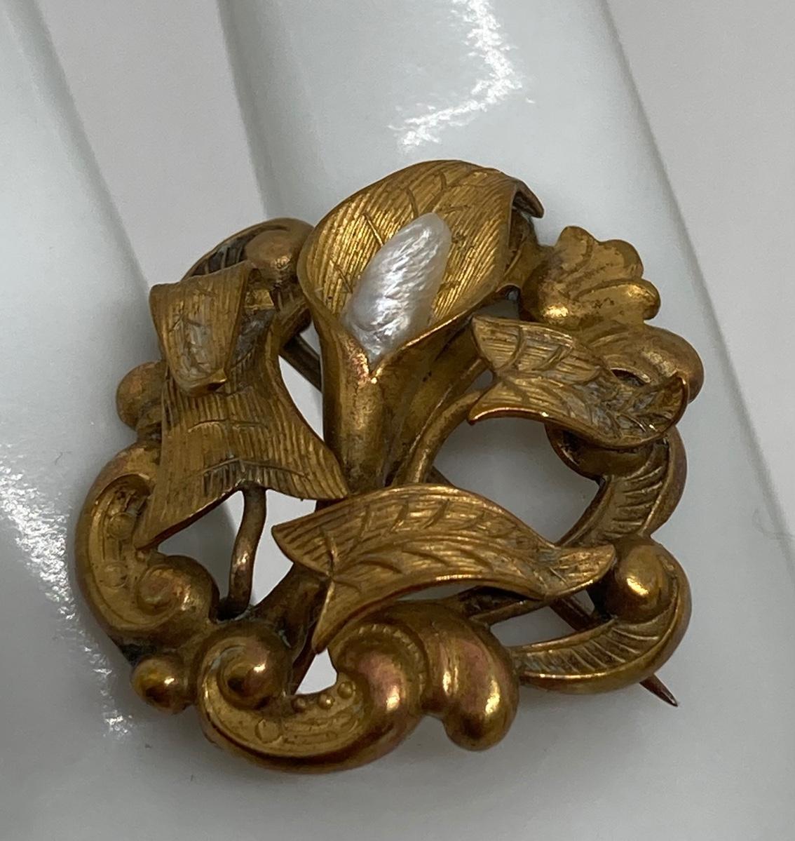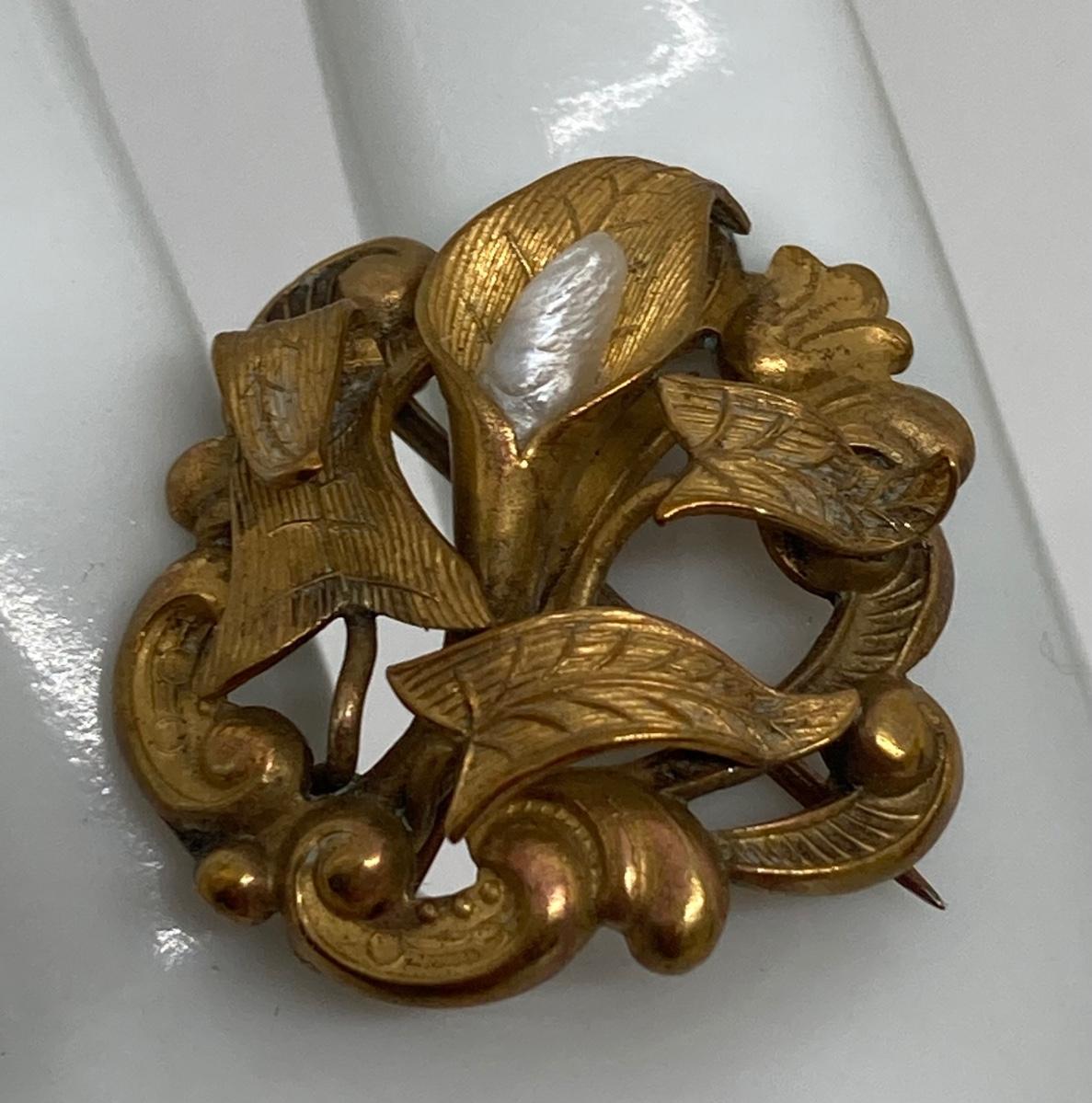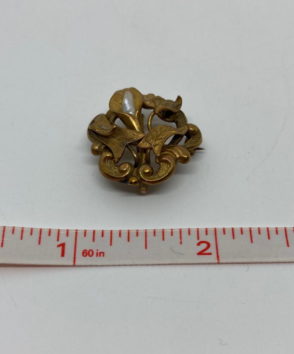 Lot 154: Victorian Mother of Pearl Lily Watch Pin