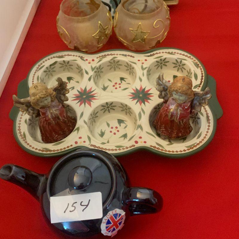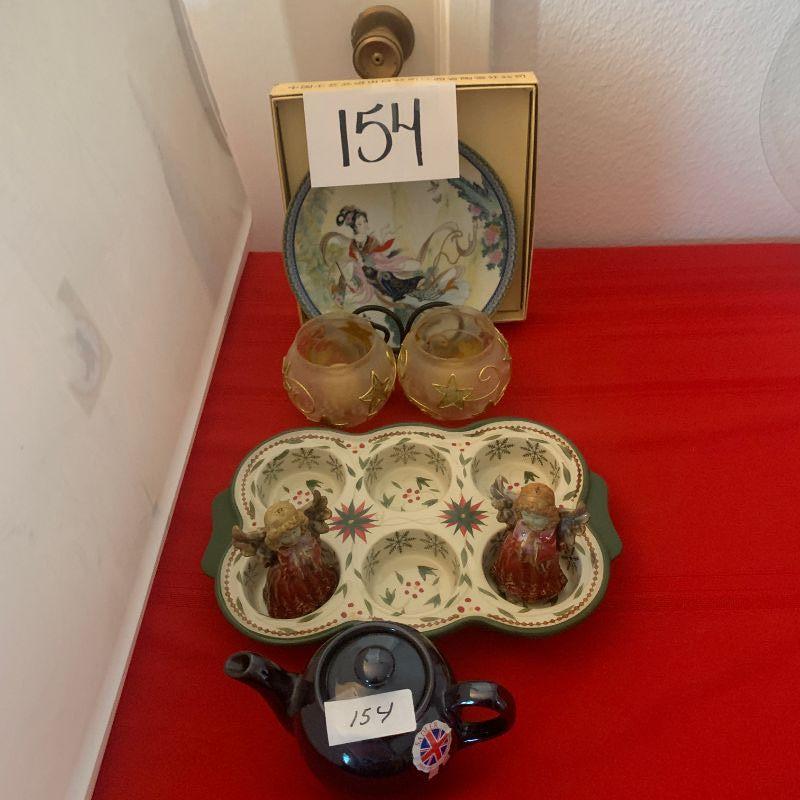 Lot 154 baking dish, Japanese plate, angels
