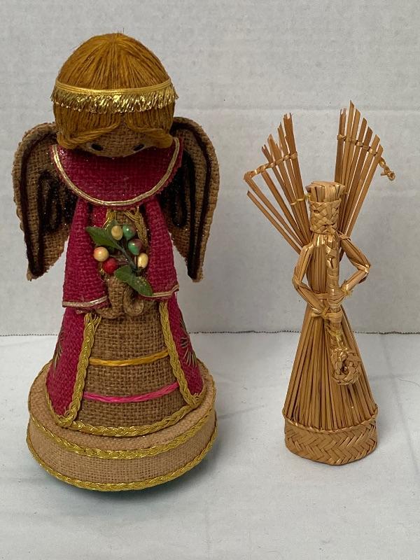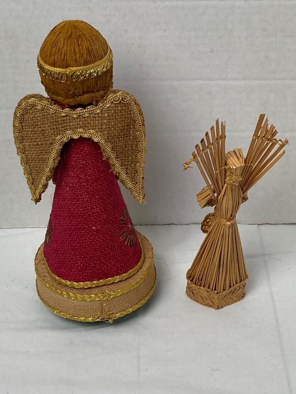 Lot #154 Burlap Angel Music Box and Small Wicker Angel