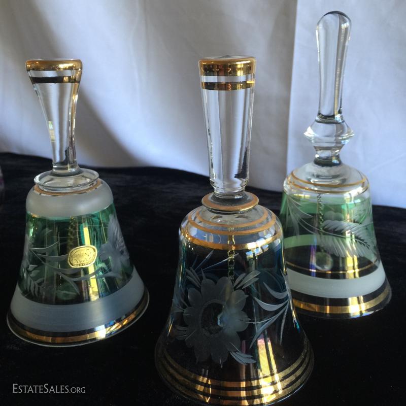 1 large & 17 small bells (some by Bayel Golden Crown, Bohemian Crystal, Lead Crystal)