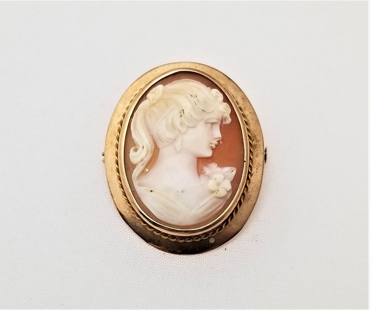Lot #154 English Vintage Carved Shell Cameo - 14kt gold mount