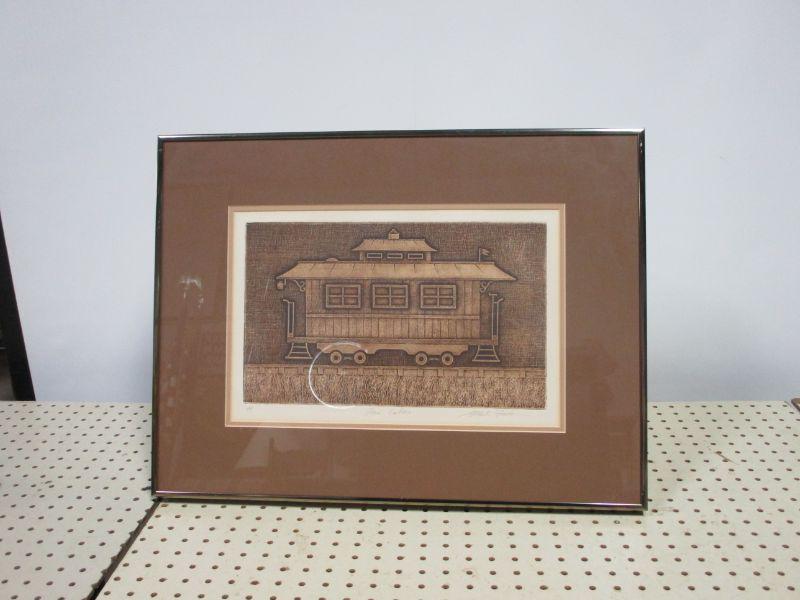 Framed & Signed Caboose Picture 24" x 18 3/4"
