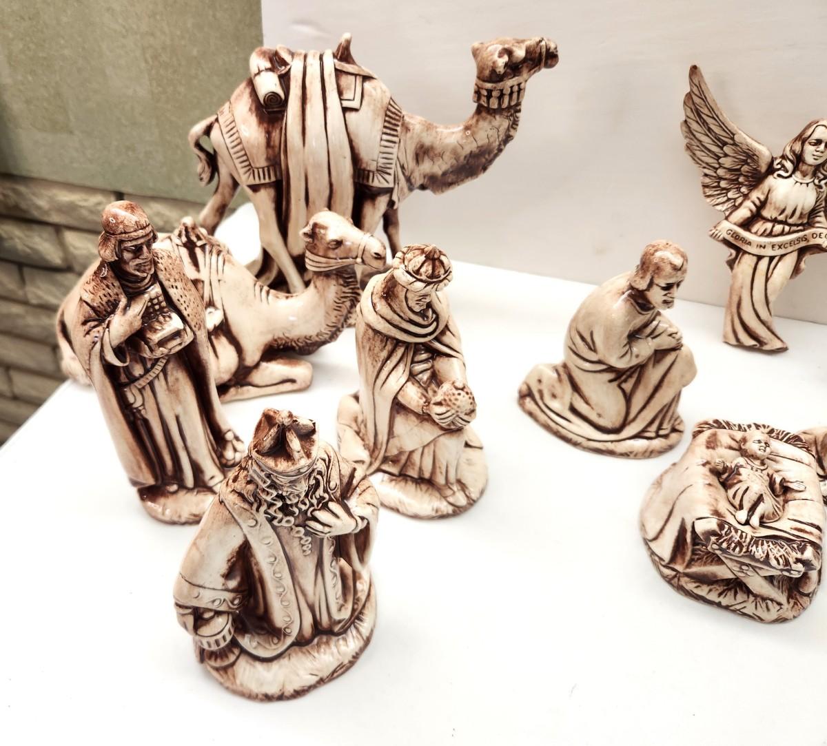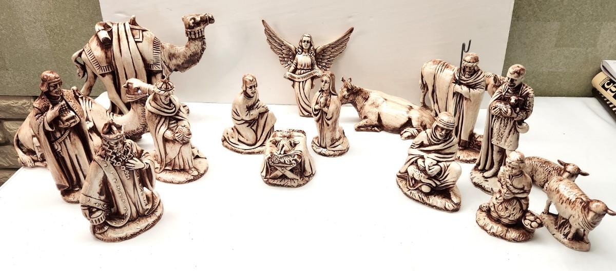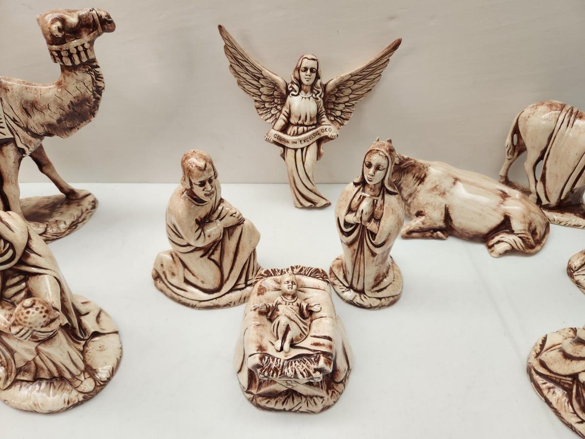 Set only - no manger. Holland Mold ceramic set - the kind you made in the 70's when doing ceramics was the rage. Set has 17 pieces, as shown. For scale, tallest piece is 8" tall. Good condition.