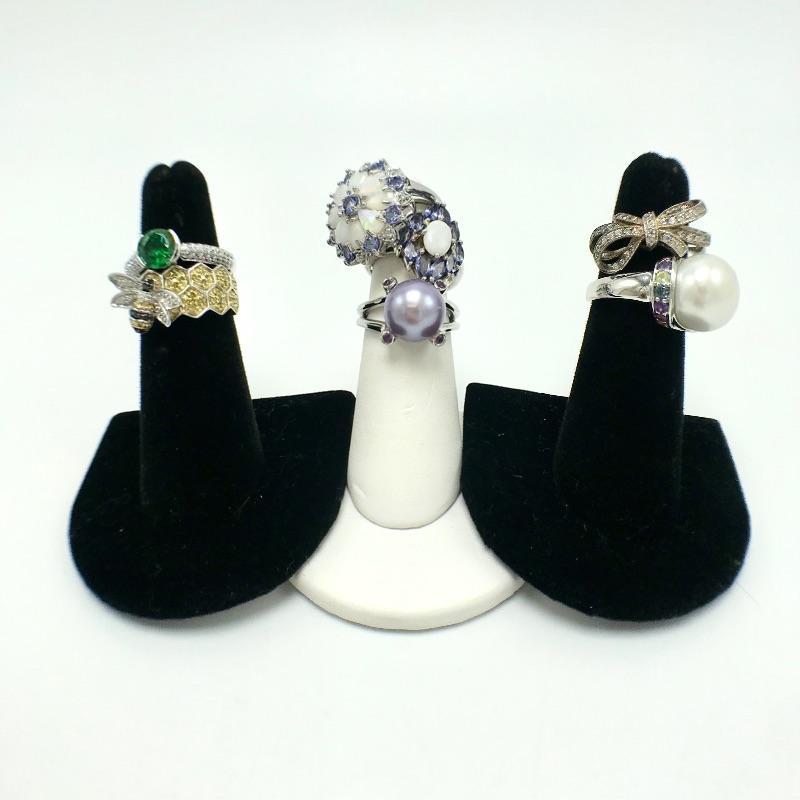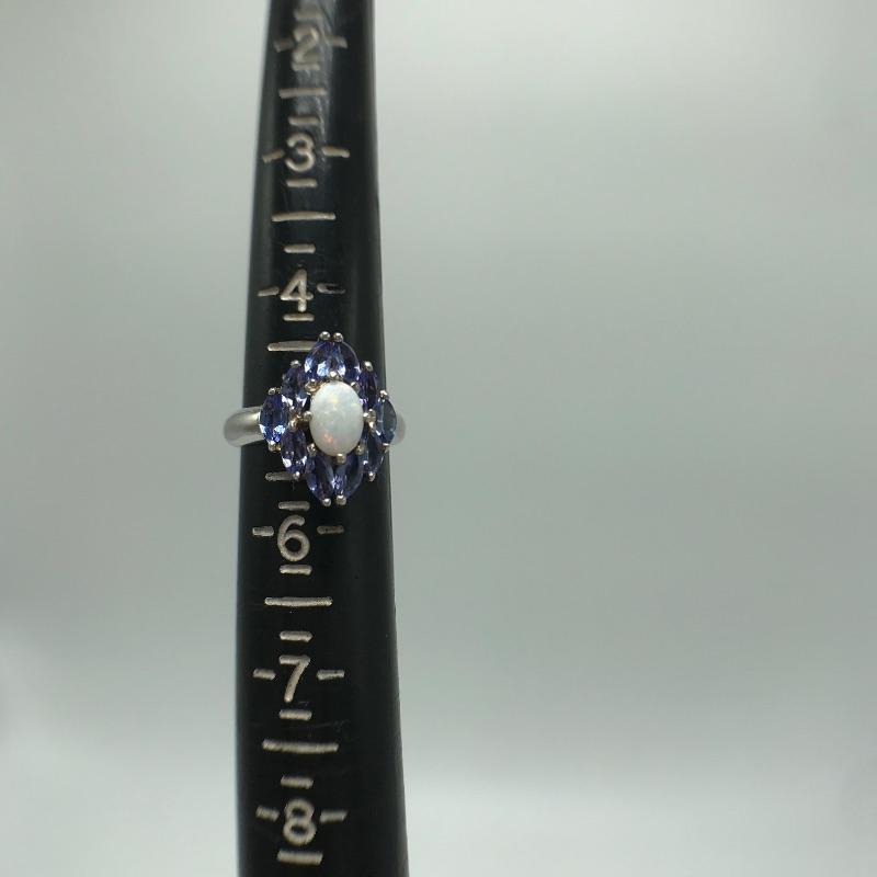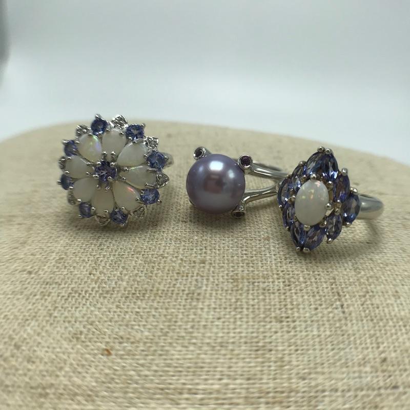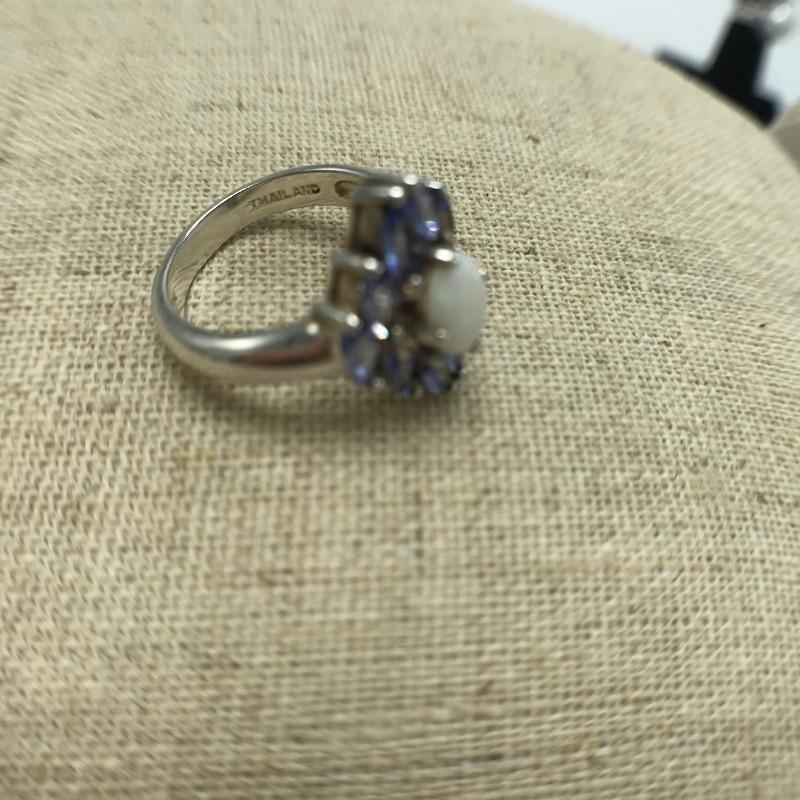Seven 925 rings with beautiful designs and gems similar to opals, amethysts, pearls and Cubic Zirconium. See photos. Most size 5.5