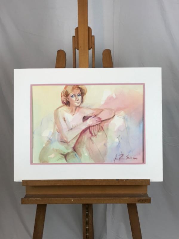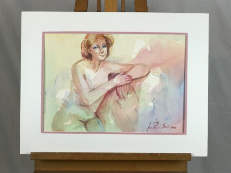 Jean Ranney Smith signed original watercolor painting “Nude Lady” measures 26”x20”