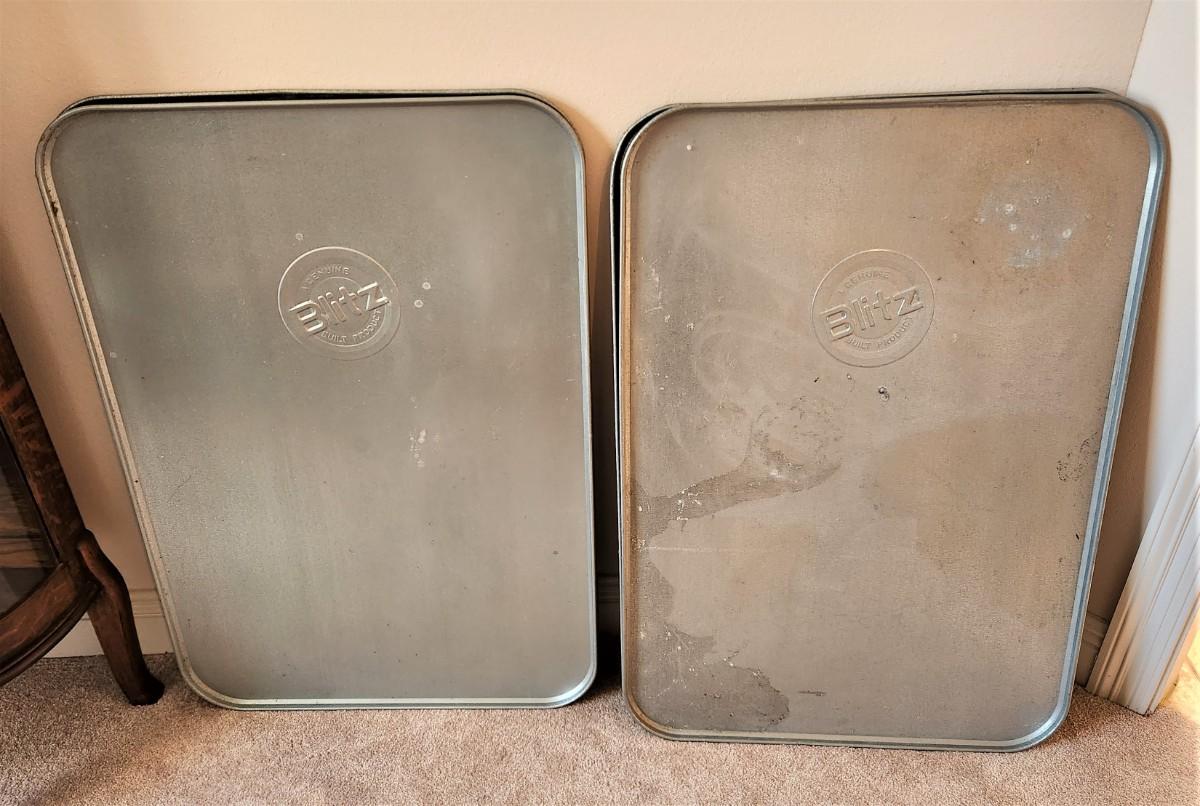 Lot #154  Lot of 4 BLITZ Aluminum Oil Trays  (vintage)