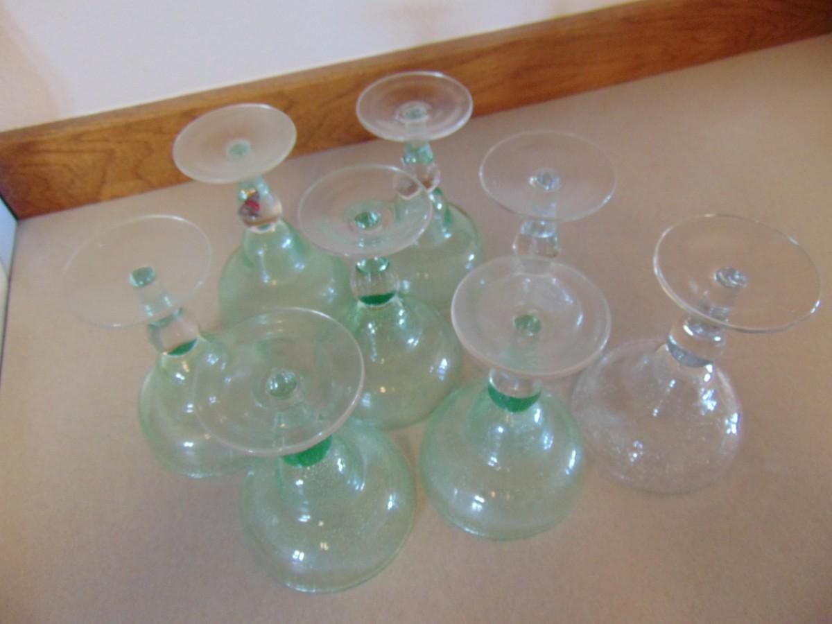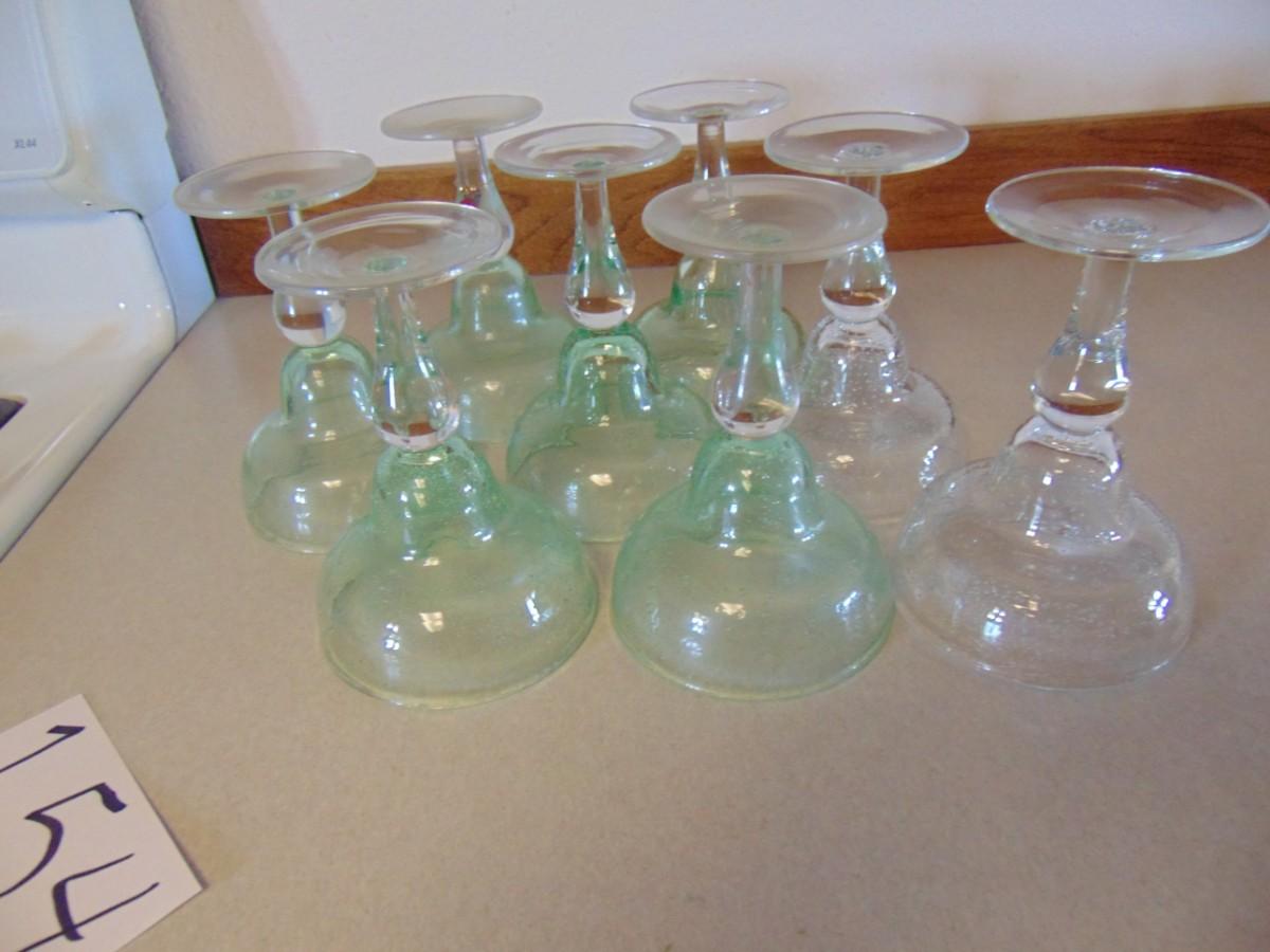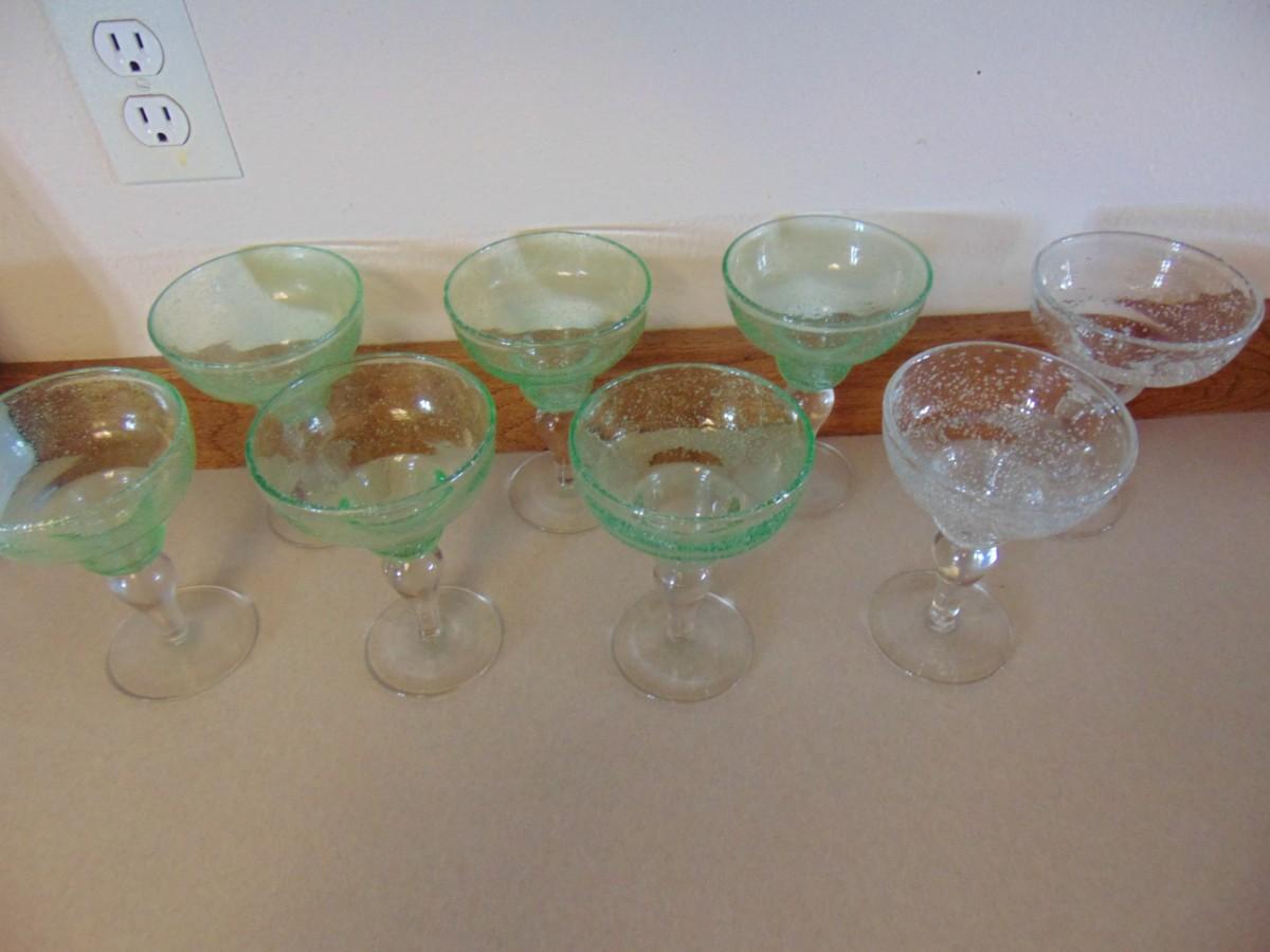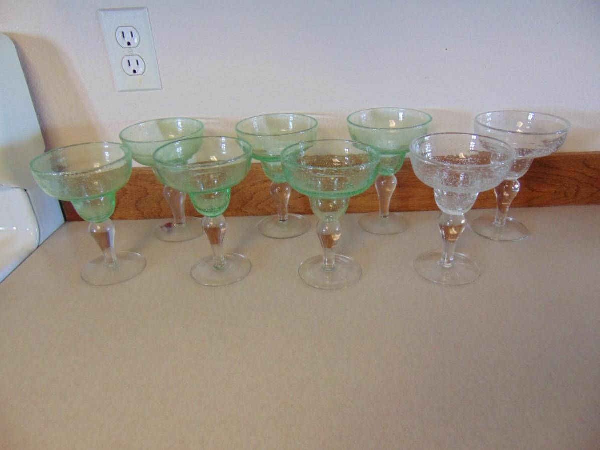 GREEN AND CLEAR STEMMED MARGARITA GLASSES
