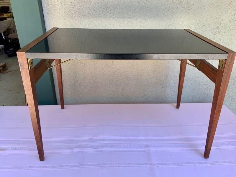 Brown & Saltman MCM folding side table. Black laminate top. 25" x 18" x 15"