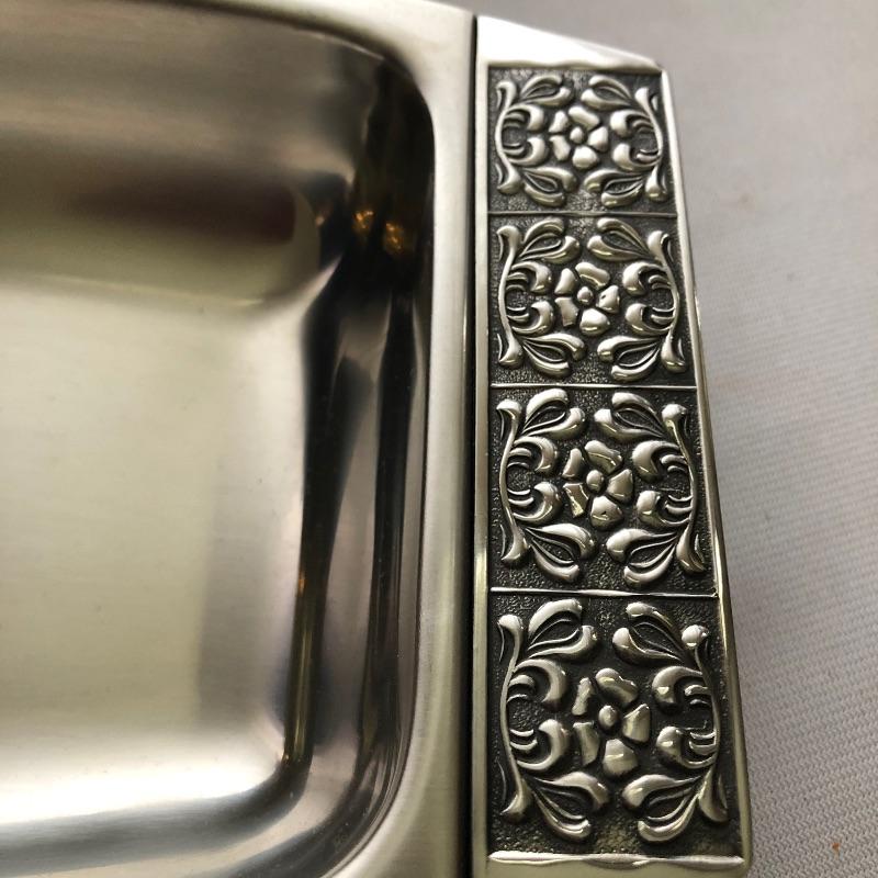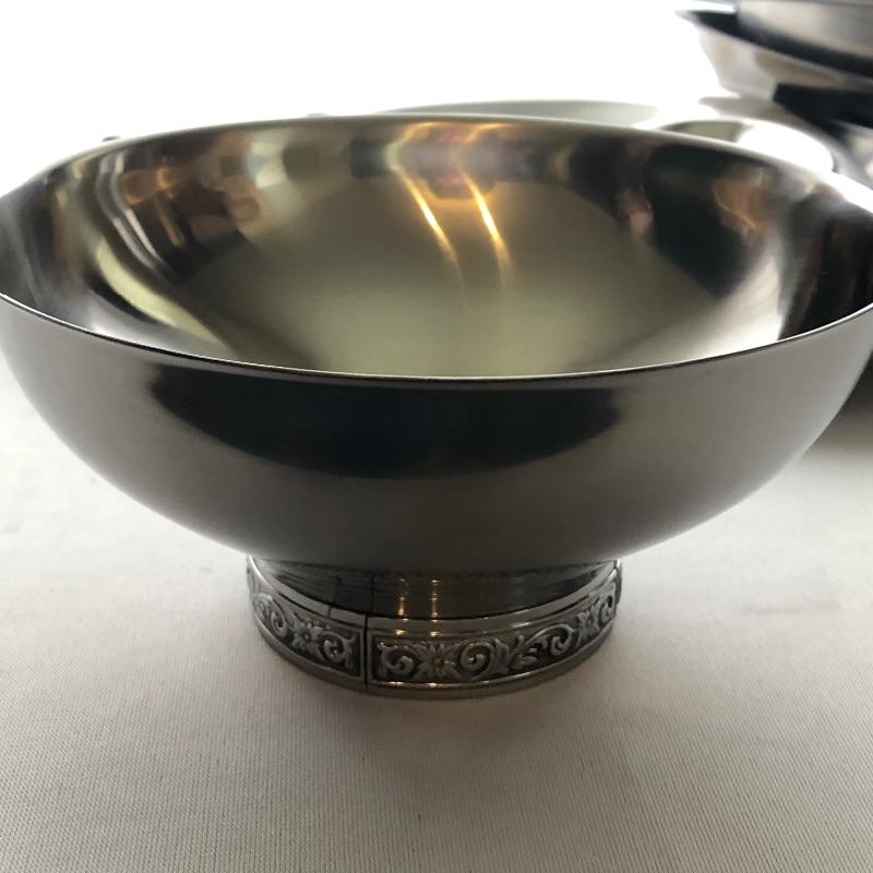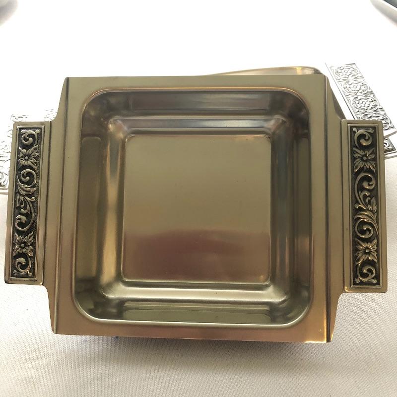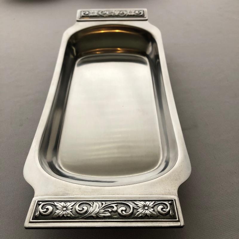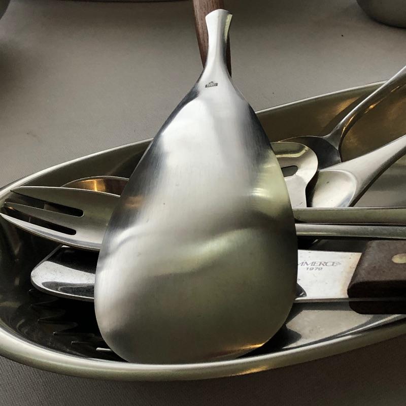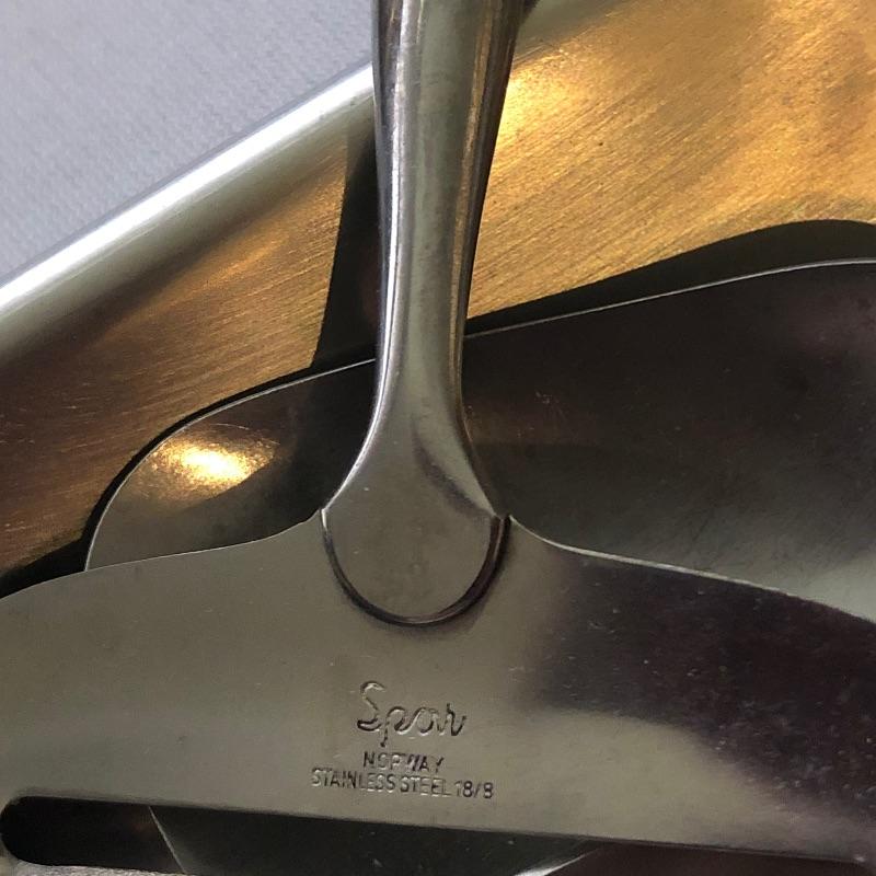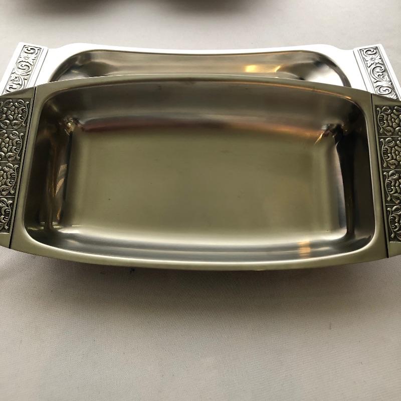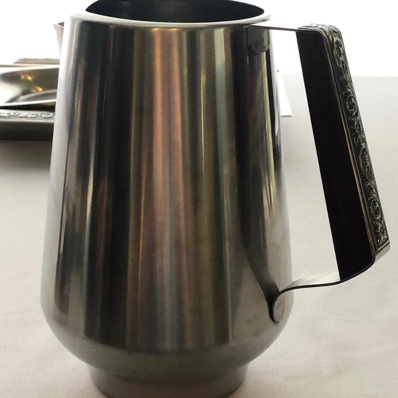 Super cool set of mid century modern stainless service ware, much of which is International Decorator and Danskas well as Swedish and German designs. Carafe does not have a lid see photos. Oval platter measures 12” x 17”. Shipping available.