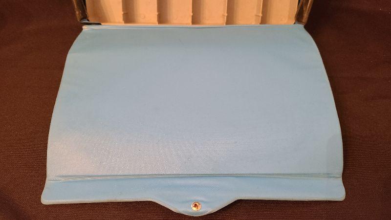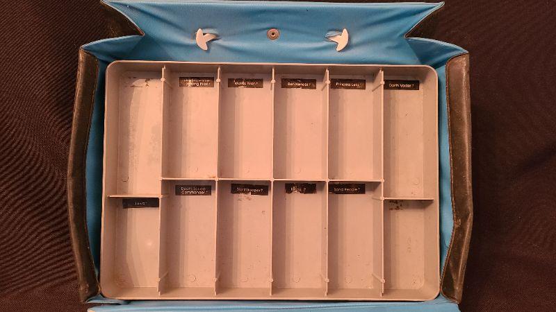 17 inch Millennium Falcon carry case with labels and pilot. Great gift! Vintage Kenner carry case with tray. Shows wear.
